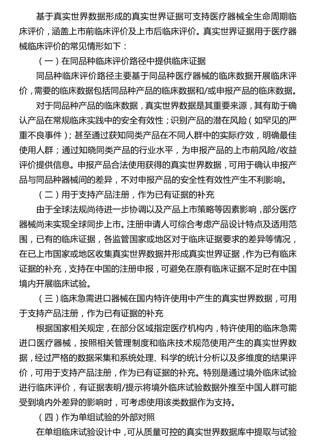 国家药品监督管理局组织制定的《真实世界数据用于医疗器械临床评价技术指导原则(试行)》(2020年第77号),已于2020年11月24日印发,自印发之日起施行(以下简称《指导原则》)。现就《指导原则》的制定背景、主要内容和需要说明的重点问题说明如下: 一、制定背景 《指导原则》在现行医疗器械法规、规章和规范性文件的框架下编写,采纳了IMDRF医疗器械临床评价工作组、登记数据库工作组成果文件的适用内容,参考了境外医疗器械监管机构技术指南、公开发表的科学文献等资料。 二、主要内容 《指导原则》包括五个部分,就真实世界数据用于医疗器械临床评价提出总领性、原则性、前瞻性要求,主要内容包括真实世界数据与证据、真实世界研究的优势和局限性、常见真实世界数据来源、质量评价、真实世界研究设计常见类型及统计分析方法、可考虑将真实世界证据用于医疗器械临床评价的常见情形。 三、需要说明的重点问题 (一)关于真实世界数据的相关概念 真实世界数据研究处于高速发展期,相关定义和理念不断更新,不同国家和地区存在差异。为促进对真实世界数据的统一理解,并为研究发展预留空间,《指导原则》在正文中对相关概念进行了描述。 对于关键概念“真实世界数据”的范畴,《指导原则》结合中国监管机构牵头的IMDRF临床评价工作组成果文件草案“上市后随访研究”的相关描述,根据中文语言习惯,将其描述为“传统临床试验以外的,从多种来源收集的各种与患者健康状况和/或常规诊疗及保健有关的数据”。 (二)关于真实世界数据的质量评价 真实世界数据质量评价是开展真实世界研究的基础,直接影响真实世界研究生成的证据强度。《指导原则》从相关性和可靠性两方面对数据质量提出要求,并采纳IMDRF医疗器械临床评价工作组、IMDRF登记工作组成果文件的相关内容,从代表性、完整性、准确性、真实性、一致性、可重复性6个方面提出数据质量评价的具体考虑要素,提高质量评价的可操作性。 (三)关于真实世界数据在医疗器械临床评价中的使用 《指导原则》明确真实世界数据可用于医疗器械全生命周期临床评价,包括上市前临床评价及上市后临床评价。《指导原则》从不同维度,梳理总结了真实世界证据用于医疗器械临床评价的十一种常见情形,包括:在同品种临床评价路径中提供临床证据;用于支持产品注册,作为已有证据的补充;临床急需进口器械在国内特许使用中产生的真实世界数据,可用于支持产品注册,作为已有证据的补充;作为单组试验的外部对照;为单组目标值的构建提供临床数据;支持适用范围、适应症、禁忌症的修改;支持在说明书中修改产品的临床价值;支持附带条件批准产品的上市后研究;用于高风险植入物等医疗器械的远期安全性和/或有效性评估;用于治疗罕见病的医疗器械全生命周期临床评价,加快其上市进程,满足患者需求;上市后监测等。从十一种常见情形可以看出,在当前发展阶段,真实世界证据在医疗器械临床评价中,更多的是作为已有临床证据的补充,不能取代现有临床评价路径。 |