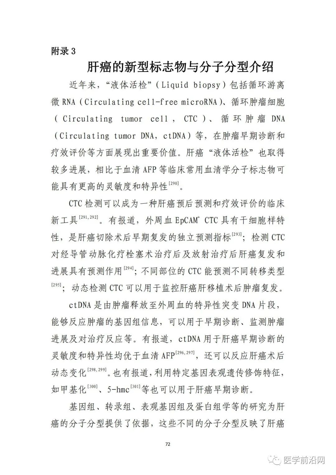 背景介绍 癌症现已成为中国高发疾病之一。正如《健康中国行动(2019~2030年)》所强调的,癌症患者承受着沉重的疾病负担,存在着巨大的未满足需求。在中国,每10分钟就有55人死于癌症;根据世界卫生组织国际癌症研究机构(IARC)发布了2020年全球最新癌症负担数据,肝癌位居全球发病率第六,91万;位居癌症死亡人数第三,83万。全球约有50%的胃癌、肝癌和食道癌病例来自中国。在中国,约有55%的肝癌患者在确诊时已处于III期或IV期,这一数字在美国和日本分别为15%和5%。对于肝癌的筛查,有助于肝癌的早期发现、早期诊断、早期治疗,是提高肝癌疗效的关键。 目前肝癌筛查除了依靠影像学外,如超声、CT、磁共振等,血清学标志物筛查也扮演着不可或缺的重要角色。如下,我们盘点一下肝癌血清学标志物有哪些。 定义 原发性肝癌简称肝癌,主要包括肝细胞癌(Hepatocellular carcinoma,HCC)、肝内胆管癌(Intrahepatic cholangiocarcinoma,ICC)和HCC-ICC混合型3种不同病理学类型,其中HCC占85%~90%,是肝癌最主要的病理亚型,具有高侵袭性、高转移率及高复发率的特点,且起病隐匿,早期诊断率低,且5年生存率低于7%。 目前已知的HCC主要病因包括乙型肝炎病毒(HBV)感染、丙型肝炎病毒(HCV)感染、饮酒、非酒精性脂肪肝(NAFLD)、黄曲霉毒素、蓝藻毒素等。不同于日本、欧美地区国家HCC的致病因素,我国HBV 感染是HCC最主要的原因,约85%HCC是由HBV 感染引起。早期诊断是改善肝癌预后的关键。 (三)肝癌的血液学分子标志物。 血清 AFP 是当前诊断肝癌和疗效监测常用且重要的指标。血清 AFP≥400μg/L,在排除妊娠、慢性或活动性肝病、 生殖腺胚胎源性肿瘤以及消化道肿瘤后,高度提示肝癌;而血清 AFP 轻度升高者,应结合影像学检查或进行动态观察, 并与肝功能变化对比分析,有助于诊断。异常凝血酶原 (Protein induced by vitamin K absence/antagonist-Ⅱ,PIVKAⅡ;Des-gamma carboxyprothrombin,DCP)、血浆游 离微 RNA(microRNA,miRNA)[50] 和血清甲胎蛋白异质体(Lens culinaris agglutinin-reactive fraction of AFP,AFP-L3) 也可以作为肝癌早期诊断标志物,特别是对于血清 AFP 阴性人群(证据等级 1,推荐 A)。基于性别、年龄、AFP、PIVKA Ⅱ和 AFP-L3 构建的 GALAD 模型在诊断早期肝癌的敏感性和特异性分别为 85.6%和 93.3%,有助于 AFP 阴性肝癌的早期诊断[51](证据等级 2,推荐 A)。目前已有基于中国人群大样本数据的优化的类 GALAD 模型用于肝癌的早期诊断。基于 7 个 miRNA 的检测试剂盒诊断肝癌的敏感性和特异性分别为 86.1%和 76.8%,对 AFP 阴性肝癌的敏感性和特异性分别为 77.7 %和 84.5%[50](证据等级 2,推荐 A)。肝癌早期诊断及疗效评价的其他新型血液学分子标志物介绍,参见附录 3。 信息来源:医学前沿网、卫健委官网 |