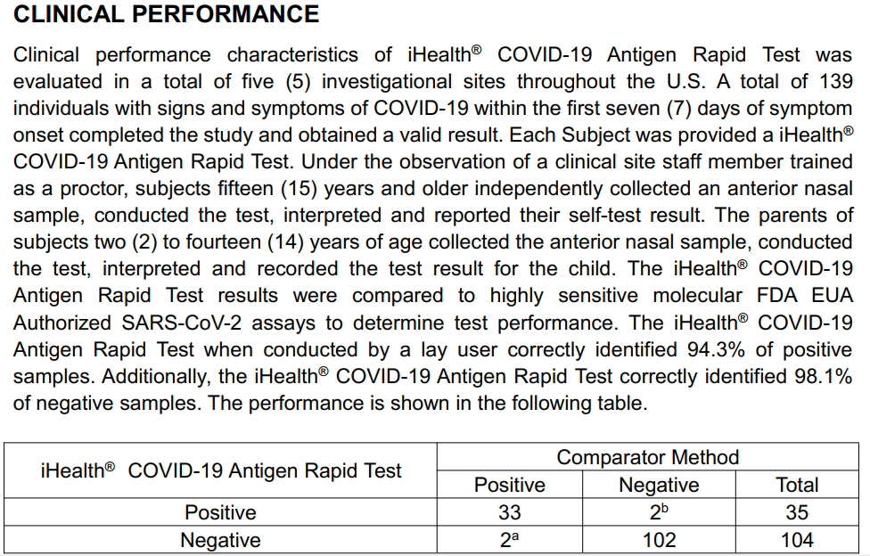 FDA上的说明书显示: iHealth新冠检测试剂采用层析方法对鼻咽拭子进行检测,15分钟即可获得结果。在和PCR试剂的139例临床样本对比试验中,iHealth新冠检测试剂在35例阳性样本中检出了33例,灵敏度达到94.3%,在104例阴样本中检出了102例,特异性达到98.1%。在交叉反应试验和干扰物质反应中,38种病原微生物和26种干扰物质对iHealth新冠检测试剂性能均无影响。由于该产品获得授权的时间早于奥密克戎的爆发,日前FDA也提示了奥密克戎毒株用抗原检测的过程中灵敏度效果有所下降,因此还难以判断iHealth新冠检测试剂对奥密克戎的检出率。 数据来源:供应商说明书 Instructions for Use for Healthcare Providers 原文请点击文末“阅读原文”下载 售价 iHealth新冠检测试剂单价为9.90美元,在普遍单价超过10美元的OTC抗原检测试剂中,价格上也稍显优势。 抗原检测试剂 抗原(Ag)是指能诱导机体发生免疫应答的物质。即能被T/B淋巴细胞表面的抗原受体(TCR/BCR)特异性识别与结合,活化T/B细胞.使之增殖分化,产生免疫应答产物(致敏淋巴细胞或抗体),并能与相应产物在体内外发生特异性结合的物质。 抗原检测试剂盒基于抗原抗体反应的基本原理,通过制备针对特定抗原表位的特异性抗体,在体外与病毒结构蛋白结合形成免疫复合物,从而对标本中的新冠病毒进行检测。新冠病毒的结构蛋白包括S蛋白、N蛋白、M蛋白和E蛋白;其中在诱导宿主免疫应答与发病机制中发挥重要作用的结构蛋白常用于抗原检测的目标蛋白,如N蛋白。九安医疗的抗原检测试剂盒即是以重组N蛋白作为免疫原的抗体试剂。 抗原检测试剂针对的是病原体自身检测,能够在发病早期检测出人体内的病毒,最大的缺点是灵敏度低,仅适用于病毒载量高的急性感染期。 来源:中国器审 公开资料显示:九安医疗成立于1995年8月,主要从事家用医疗健康电子产品的研发、生产和销售,主要生产销售家庭保健用器械,近年来从体征监测健康医疗产品,逐步扩展到智能IOT及消费产品领域。公司有两大核心战略,即服务和医疗器械。服务业务为采用糖尿病诊疗照护“O+O”新模式,即链接医生、糖尿病教育者、营养师、运动指导师等组成的照护团队,采用新技术手段,对糖尿病患者进行闭环式照护服务。产品方面,主要产品涵盖血压、血糖、体温、血氧、心电、睡眠、运动等众多领域。2020年,新冠肺炎疫情爆发,九安医疗迅速响应防疫需求,提前恢复生产,积极扩大产能,并在国内疫情缓解后,于2020年3月中旬开始向国外出口额温计等防疫产品。2020年,公司实现营业收入20.08亿元、净利润2.42亿元,同比分别增长184.36%、264.68%。 实际上,获得FDA EUA的国内第一家新冠抗原自检试剂来源于艾康生物,于去年10月4日获批。数据显示,在和PCR试剂的临床对比试验中,艾康生物的Flowflex抗原自检试剂在42例阳性中检出了39例阳性,和PCR试剂相比的阳性符合率(PPA)是93%,稍低于iHealth新冠检测试剂。 据报道,目前国内只有九安医疗、东方生物和艾康生物三家公司生产的快速检测试剂拿到了FDA授权,能进入美国市场。同时,包括美康生物、博拓生物、万泰生物和万孚生物等公司的快速检测试剂产品,也正在申请美国的FDA认证(持续更新……)。 参考文献: 1.九安医疗公告 2.中国器审 抗原检测试剂盒的原理及常用方法 3.FDA 说明书 注:供应商说明书可以扫描下方↓↓绿码,进入小桔灯网干货平台下载! |
