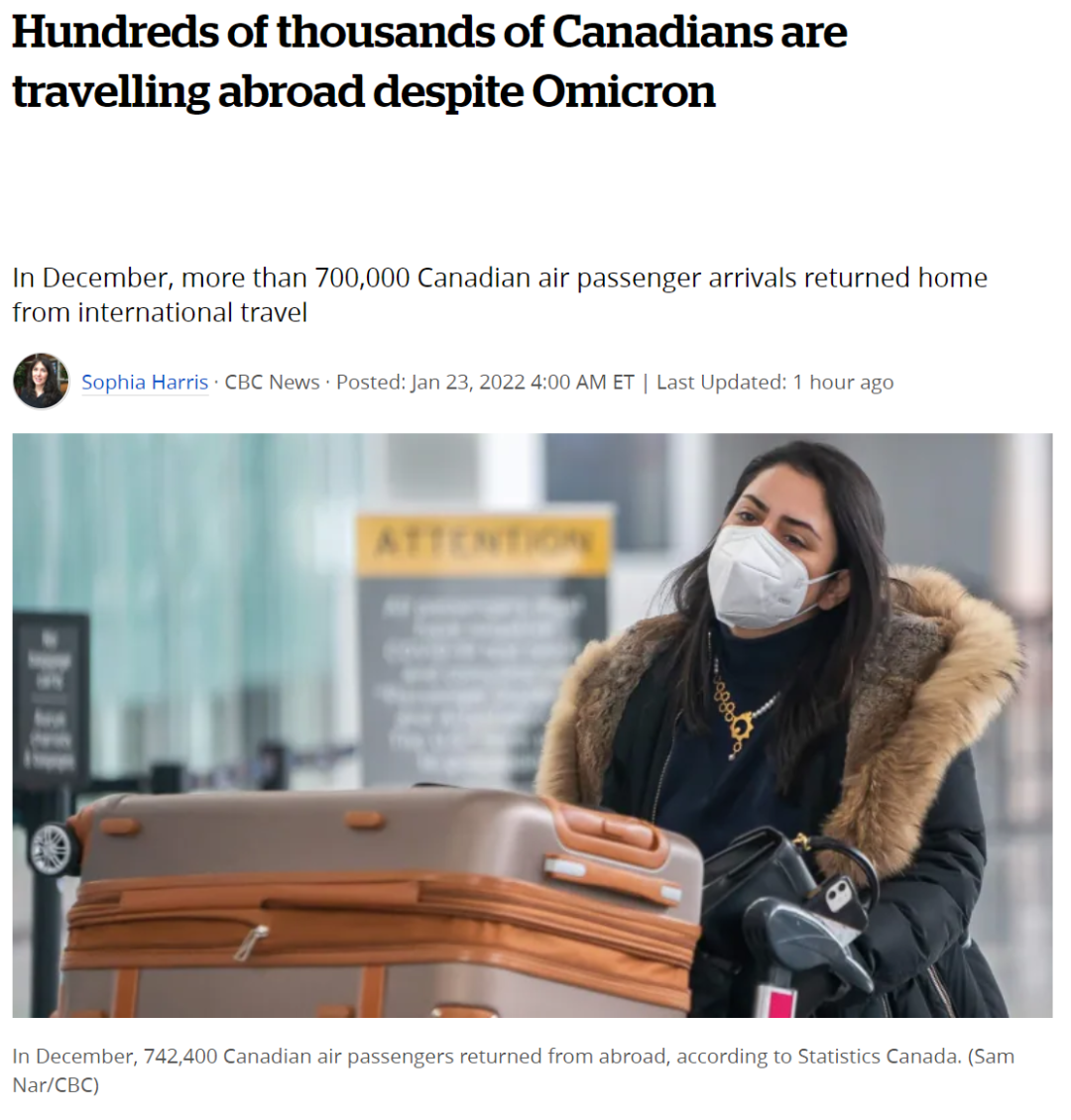 路透社、法新社等多方媒体报道:这款名为BA.2的Omicron的亚变种日前已经在欧洲多国引发病例的狂飙。英国已发现400多例,在丹麦,BA.2更逐步成为主流毒株,目前45%的新增病例都是感染的BA.2,挤开Omicron,跻身主流。 更“恐怖”的是,BA.2因为缺少“S基因脱落”特性,在使用核酸PCR检测时更难以辨识,也因此被称为“隐形版Omicron”。Omicron高峰刚过,“妹妹”又来搅局,有专家发出警告:BA.2恐掀起新一波疫情!先简单介绍一下:Omicron变种(B.1.1.529)目前有3个不同分支,分别为BA.1,以及BA.2和BA.3。世卫组织在去年12月23日报告,测序的病例中有99%以上是BA.1,但仅一个月时间, BA.2已泛滥。根据“流感数据共享全球倡议”(GISAID)平台的统计数据,全球已有超过40个国家和地区已报告1万多起BA.2个案,该毒株已经是印度和菲律宾部分地区的主流毒株,德国、丹麦和挪威的相关病例正飙升。英国在发现426例相关病例的情况,21日将BA.2列为“正在调查的变体”;世卫组织WHO代表目前已紧急前往哥本哈根展开调查。在“隐形版Omicron”已占新增病例45%的丹麦,近期新增感染病例同样“奇怪”激增,日增甚至超过3万例,这在Omicron病例逐渐下降的欧洲,很不寻常。目前,科学家们还没有足够的证据确定BA.2的传播力,但伦敦帝国理工学院病毒学家TomPeacock指出,多个国家已看到它的持续增长,证实BA.2的传播力或较BA.1高。而一则“9秒传染”的案例也令人心惊——据报道,巴基斯坦裔女子的两个儿子搭地铁上学,另外1名教师也搭乘同样的地铁。监控录像显示他们都经过一个出站口隧道,3人都戴口罩,没有直接接触,距离也不近。然而,就是这共处同一空间的短短9秒里,教师被感染了。“诡异”的还有,尽管BA.2已经在超过40个国家和地区现踪,但至今都无法得知该变种究竟起源于哪里。如此惊人的传播力和不断上升的感染数据让专家心忧,丹麦 Statens Serum Institut (SSI)研究员Anders Fomsgaard就表示,“有这样一种可能,已经感染了OmicronBA.1的人,很快也可能再次感染BA.2。因此,我们有可能看到2波Omicron疫情高峰”。法国政府防疫专家、巴斯德研究所教授法拉奥尔也警告,BA.2亚变种恐在法国掀起新一波疫情。不过,也有专家认为,目前没有证据显示BA.2更具“杀伤力”,感染症状依然与Omicron一样,轻症为主,住院率并没有引起显著上升,因此暂时不必过于恐慌。一波又一波的疫情之下,很多人已经开始麻木了。且不说BC省卫生官的“将新冠当成流感对待”的防疫方针下“不检测、自我诊断、自我隔离”的神奇操作,还有一批加拿大人已经抱着“去他的Omicron,什么都不能阻止我出去玩”的心态,开始了“报复性旅游。”CBC新闻今天排行榜第一条:“尽管有Omicron,成千上万的加拿大人依然在出国旅游”何止是“成千上万”,数据显示,仅去年12月就有70万加拿大人出国旅游回到加拿大,今年1月1 月 3 日至 1 月 9 日这一周,还有 216,752 名加拿大航空旅客抵达加拿大。一位居住在大温列治文的夫妇就在Omicron呼啸期间去墨西哥旅游10天。他们觉得假期过的很舒服,因为疫情,他们已经共有2年没有出国玩过了,“人生苦短,”58岁的丈夫表示:“我们需要感受一些温暖,我们很想念墨西哥。”卡尔加里 The Travel Lady Agency 的老板 Lesley Keyter 表示,尽管有 Omicron 的威胁,客户们仍在预订旅行,客户数量与去年同期相比猛增了 30% 至 40%。她说,客户的热门目的地包括欧洲、墨西哥和哥斯达黎加。“人们说,‘听着,我们在这个星球上的时间有限......我们已经推迟了两年的旅行,我不想再推迟了。”是的,人生很苦短,但因此枉顾警告和传播病毒的风险,为了及时满足的快乐而任性旅游的结果,是新冠病毒一次又一次轻松地找到环游世界的途径,并且在这样一次一次的传播上,病毒不断升级自己,变得更具传播力,更能逃避免疫……这样的后果,专家警告过很多次,Omicron的出现也证实了此事。可惜,人们不听不顾,疫情还是一步步走到了今天。这一回,隐形版Omicron会给世界带来什么呢?