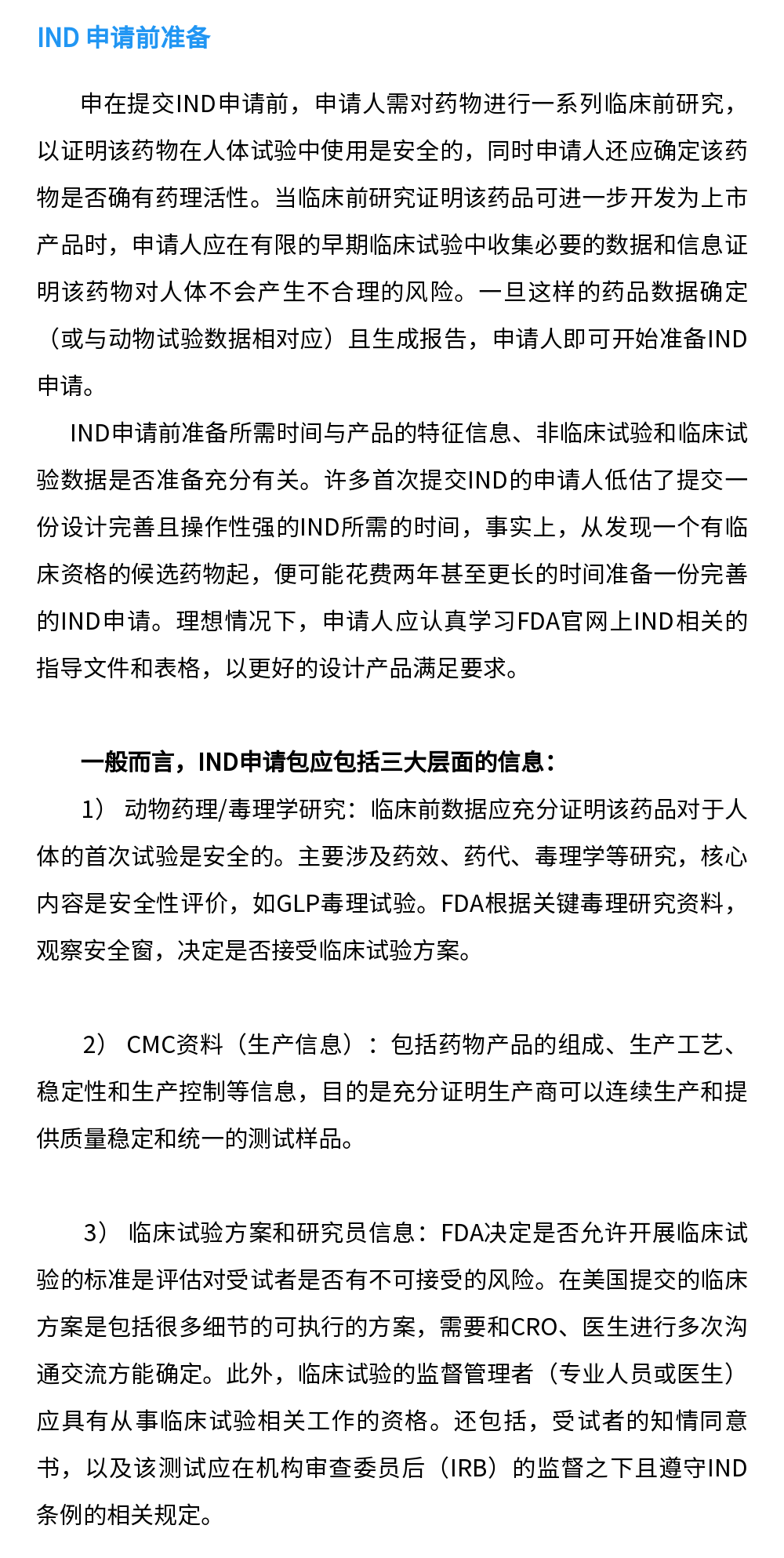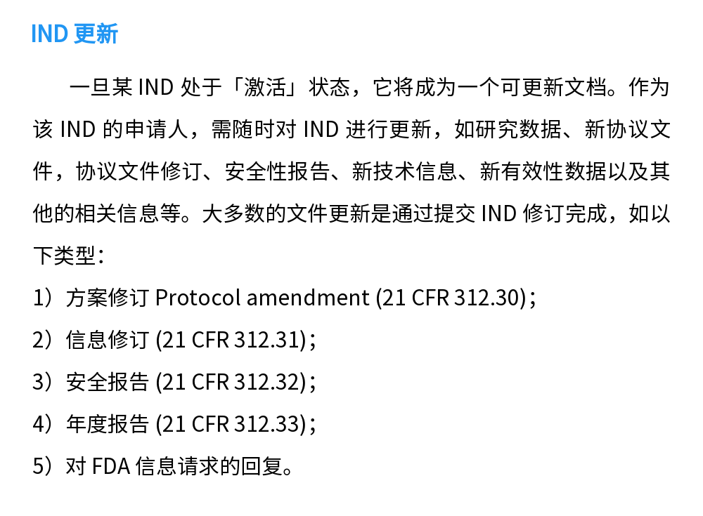 那么,什么情况下需要提交 IND 申请呢?在新药或生物制剂完成临床前研究,准备开展临床试验时,需要提交 IND 申请。亦有在已获批药物或生物制剂发生新的适应症、重要标签变更、以及剂型、给药途径或患者群体的变更时也需要提交 IND 申请。