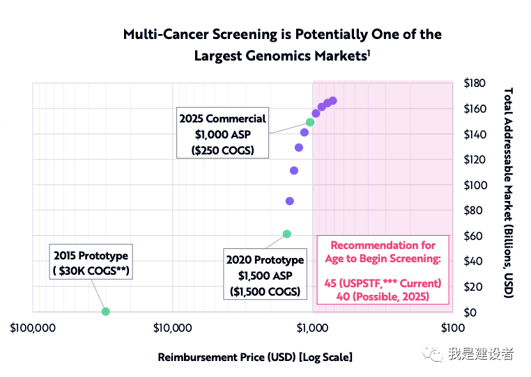 总体上来讲,ARK 认为分子生物学的未来是基于整合中心法则的多组学技术。随着成本下降,结合 DNA、RNA 和蛋白质的分子诊断应该比现有方法更准确、更全面地检测疾病。因此ARK 预计在未来五年,用于癌症、器官健康(如心血管)和人口规模研究的液体活检将呈指数级增长。根据其研究,包括生命科学工具、基础和转化研究、人口健康和分子诊断在内的多组学将以 22% 的年增长率在未来五年内从 1100 亿美元增长到约3000 亿美元的市场规模。 更多内容,可前往官网获取ARK_BigIdeas2022报告全文。 以上,如标题所讲,我是建设者也将在后续尽多覆盖多组学在技术、数据、及与健康相关方面的进展及观察,欢迎点击关注。 |