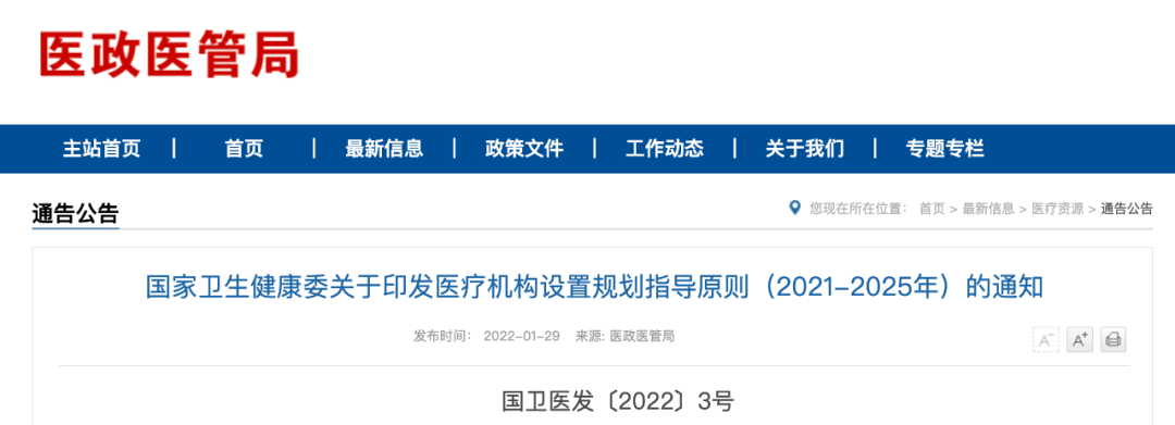 国家卫健委发布:全国医疗机构设置标准