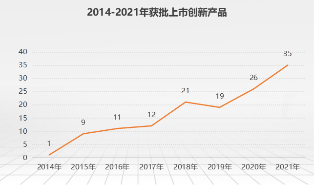 ▲ 数据来源:众成医械 其中2014-2021年分别获批17件、28件、46件、64件、50件、39件、53件、60件。