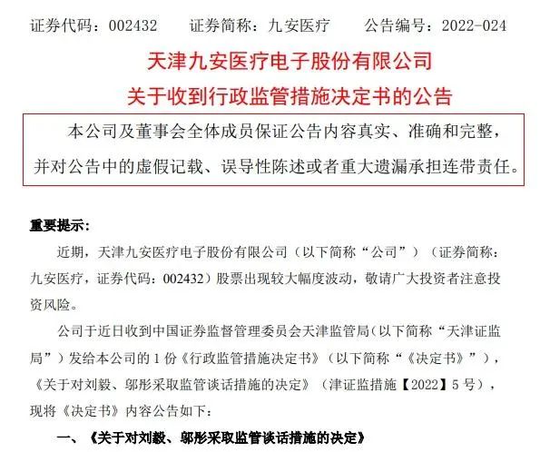时间2月14日,一年一度的“超级碗”赛事落下帷幕。这是美国国家橄榄球联盟的年度冠军赛,广受关注,也被戏称作“美国春晚”。 作为美国广告商的无敌收割机,今年“超级碗”30秒的广告已经卖到了700万美元。要是能免费蹭上“超级碗”热点,相当于少花上千万广告费。 向来很能蹭热点的九安医疗不甘寂寞。2月14日晚,九安医疗又在投资者关系平台上发布消息称:超级碗决赛中,主办方给入场观众发放了iHealth试剂盒产品。据媒体进一步报道,现场发放了12万份试剂盒。 在国外露了脸,但在国内,九安医疗却受到了监管关注。 2月14日九安医疗公告表示,收到天津证监局下发的《行政监管措施决定书》与《关于对刘毅、邬彤采取监管谈话措施的决定》。刘毅是九安医疗董事长、总经理,邬彤则是九安医疗董秘。 正是因为邬彤对iHealth新冠抗原快速检测试剂盒的信披及投资者回应,九安医疗股价非正常上涨,两个月内最高涨幅达10倍。 据监管决定书,九安医疗未全面披露其产品的相关实验结果。因此,天津证监局要求在2月18日前对刘毅、邬彤二人进行监管谈话。 2月14日晚,九安医疗发布公告称,近日收到中国证券监督管理委员会天津监管局(发给九安医疗的《行政监管措施决定书》(以下简称《决定书》),决定对其公司董事长、总经理刘毅和董秘邬彤采取监管谈话措施。 此前,2022年1月7日,九安医疗披露称,公司于北京时间2022年1月5日晚间收到了美国FDA安排的美国国立卫生研究院(NIH)的RADx项目就iHealth新冠抗原家用自测OTC试剂盒针对Omicron变异病毒的测试性能实验报告,并称该报告显示“iHealth-Covid-19 Antigen Rapid Test在实验中100%的检测出了最大CT值为21.59(n=5)的Omicron活性病毒样本”。 公告还翻译了美国FDA在其官方网站对新冠抗原检测试剂盒产品针对检测Omicron变异病毒有效性的情况描述:FDA正在与NIH合作RADx项目,使用感染Omicron变异病毒患者样本,研究抗原检测试剂盒的表现。RADx近期经过初步研究评估了一些抗原检测试剂盒在检测被感染病患的活性病毒样本的表现,这是短期内评估其真实检测表现的最好方法。早期数据显示抗原检测试剂盒可以检测Omicron变异病毒,但其灵敏度可能降低。公告披露当日,该公司股价上涨6.05%。 《决定书》显示,此次天津证监局决定采取监管谈话措施的原因是,九安医疗在1月7日的公告中仅披露了部分检测成功的实验结果,未对全部实验结果进行披露,披露信息不完整。而刘毅作为九安医疗董事长、总经理,邬彤作为九安医疗董事会秘书,对上市公司临时报告信息披露的完整性承担主要责任。 2月15日,九安医疗针对《决定书》内容发布公司称,公司及相关人员收到上述行政监管措施后高度重视,并将严格按照监管要求积极整改,认真总结,吸取教训,加强相关人员对证券法律法规的学习,强化规范运作意识;同时加强内部控制和信息披露管理,切实提高公司规范运作水平和信息披露质量,维护公司及全体股东利益,促进公司健康、稳定、持续发展。 不过,这已不是九安医疗在近期首次引起监管关注了。记者注意到,从2021年11月16日至今,九安医疗发了12次股票交易异常波动公告和7次股票交易风险提示公告,深交所也对九安医疗下发了3份关注函和1份监管函。 1月12日晚,深交所在对九安医疗发出的监管函中表示,希望九安医疗就几个事项作出说明,主要包括:样本CT值的含义;是否以部分样本阳性检出率来混淆全部样本阳性检出率误导投资者;实验结果是否可以代表总体情况等。 1月15日,九安医疗在回复深交所关注函时称其公司之前披露的“在实验中 100%的检测出了最大CT值为 21.59(n=5)的 Omicron 活性病毒样本”,其中“最大”的含义即是代表小于等于21.59的样本可以100%检出,大于21.59的样本无法 100%检出,并称该实验“全部实验组样本阳性检出率:CT值≤21.59时可全部检出,CT值22.86时可60%检出,CT值≥23.87时完全不能检出。” 资料显示,九安医疗成立于1995年, 是一家专注于健康类电子产品和智能硬件研发生产的上市企业,同时也是一家搭建移动互联网“智能硬件+移动应用+云端服务”个人健康管理云平台的创新型科技企业。公司于2010年6月10日在深圳中小板上市,同年向移动互联网转型并创建自主创新品牌“iHealth”。近年来公司专注于健康类电子产品和智能硬件研发生产的企业,陆续推出了涵盖血压、血糖、血氧、 心电、心率、体重、体脂、睡眠、运动等领域的个人健康类可穿戴设备,并获得小米科技2500万美元战略投资,成为小米生态链合作伙伴。 2021年11月16日至2022年1月14日,约两个月的时间里,九安医疗股价曾涨幅超过10倍,一度被医药行业称为“2021年度妖股”。2021年11月8日,九安医疗称子公司的新冠抗原家用自测OTC试剂盒(胶体金免疫层析法)获得美国食药监局(FDA)应急使用授权(EUA)。消息发布后,九安医疗股价暴涨,并收获多个涨停板,到2022年1月18日其股价最高涨至88.88元,两个半月的累计涨幅超过14倍。此后,连续大涨的九安医疗股价出现调整,截至2月14日收盘,已累计下跌33.4%。 2022年1月20日,九安医疗公布2021年度业绩预告,预计实现归属于上市公司股东的净利润为9亿元—12亿元,较上年同期增长271.40%—395.19%;扣除非经常性损益后的净利润为8.5亿元—11.5亿元,同比增长243.46%—364.68%。 |