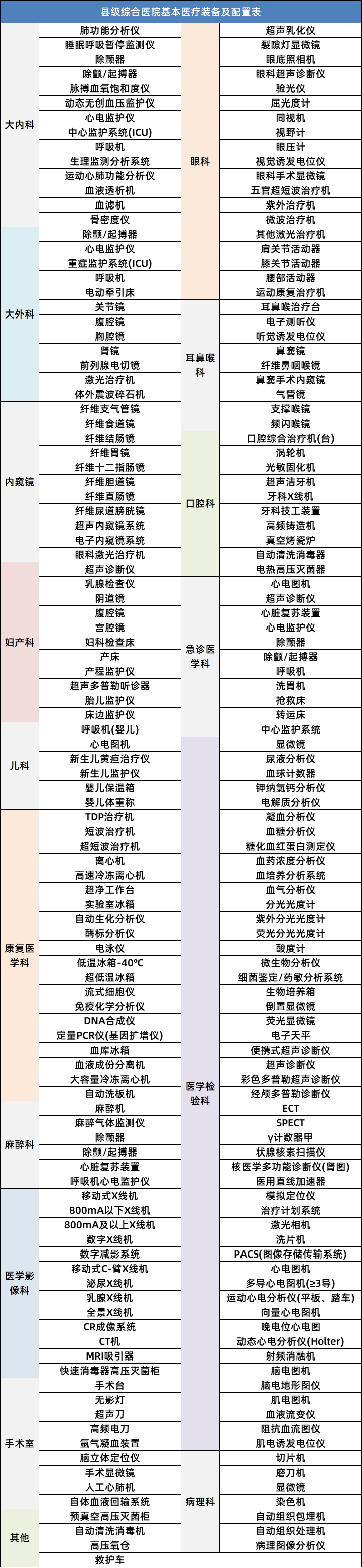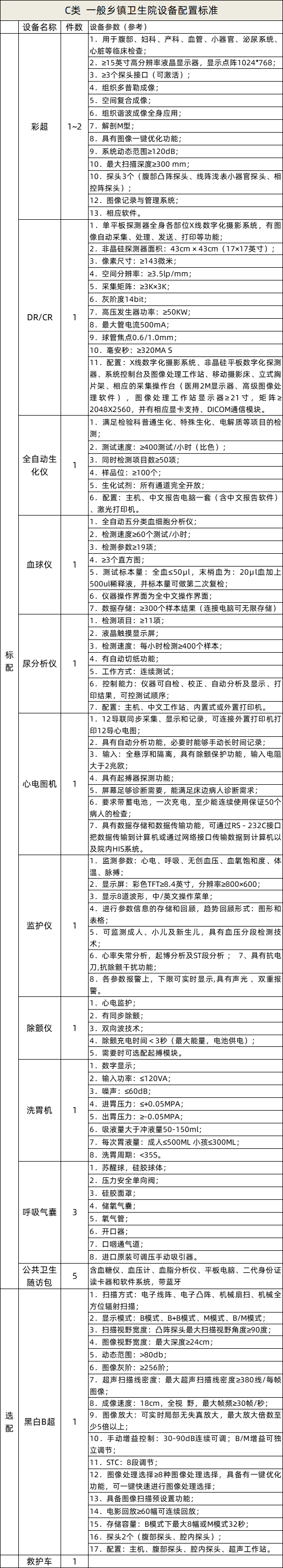 2月18日,国家卫健委、国家中医药局联合发表关于通报表扬2021年“优质服务基层行”活动中表现突出、服务优质机构的通知。 通知表示,2021年各地按照工作部署扎实开展“优质服务基层行”活动后,经评定,最终确定2200多所社区卫生服务中心和乡镇卫生院达到服务能力推荐标准。 “优质服务基层行”活动于2018年首次开展,国家卫健委对乡镇卫生院和社区卫生服务中心这两类医疗机构提出了建设新标准,对设备配置也作出明确要求。 力争使乡镇卫生院和社区卫生服务中心的服务能力达到基本标准,部分服务能力较强的乡镇卫生院和社区卫生服务中心达到推荐标准。 国家卫生健康委适时对在活动中表现突出的乡镇卫生院和社区卫生服务中心进行通报表扬。达到推荐标准的乡镇卫生院,符合相关条件的可参加二级医院评审,进一步加强医疗质量管理。 这意味着,将有一大批医院从三级升为二级!本次达到推荐标准的2200家乡镇卫生院,和社区卫生服务中心,就名列其中。这些医院需要增加医疗设备的配置,同时也会增加医用耗材的采购量,以应对升级后诊疗量的提升。 2018年,国家卫健委第一次印发《关于开展“优质服务基层行”活动的通知》,同时制定了乡镇卫生院、社区卫生服务中心服务能力标准。2019年,乡镇卫生院、社区卫生服务中心服务能力标准得到更新。 在此之前,乡镇卫生院主要参照《医疗机构基本标准》进行设置,具体功能定位和服务能力标准没有统一的蓝本可供对照,随着“优质服务基层行”活动的进一步展开和落实,全国的卫生院建设将进一步规范,功能定位更加准确。 在设备配置方面,除了基础设备,还要求提高检验检查服务能力,合理配置和更新必要的设施设备,开展常规检验和心电、超声、X线影像等检查服务。 ※ A档代表“优秀”,B档代表“良好”,C档代表“合格”,D档代表“不合格”。 新版标准在科室设置方面,要求合格的卫生院必须建立五大类基本科室,其中全科医疗科已经作为科室设置必选项。 贵州: 2月8日,据《贵州日报》报道,2022年贵州省将启动第一批50个县域医疗次中心建设工作,由省级财政投入合计2.5亿元,资金主要用于科室设置、人才队伍建设、医疗设备配置等,严禁滞留、截留、挪用资金。 县域医疗次中心本质上仍是乡镇卫生院,为非营利性和新增医疗卫生机构,不支持新建,主要任务是向居民提供常见病、多发病的诊疗及康复、护理以及急危重症、疑难病症的急诊急救及转诊服务,能开展二级常规手术操作项目。 湖南: 1月7日,《湖南省人民政府办公厅关于促进基层卫生健康事业高质量发展的意见》指出,鼓励遴选已达到“优质服务基层行”活动推荐标准的乡镇卫生院进行重点建设,加大投入和指导,对标县级医院医疗服务能力,建成县域医疗次中心。 四川: 1月12日,四川成都市卫生健康委员会公布了成都市第一批县域医疗次中心20个创建单位。 四川将建设县域医疗次中心,列入了四川省“十四五”国民经济和社会发展计划和“十四五”卫生健康事业发展规划中,2021年已投入资金1.26亿元,用于支持首批42个次中心建设,2022年还将建成150个县域医疗次中心。 山东: 2021年3月,山东济南市卫生健康委党组成员、副主任米宽庆介绍,济南将选择章丘区刁镇卫生院、济阳区垛石镇中心卫生院等12家机构建设县域医疗服务次中心,构建医防融合体系。 安徽: 2021年12月17日,安徽省六安市17家乡镇卫生院成功创建二级综合医院。1月24日,安徽省安庆市怀宁卫健委提出,打造县域医疗次中心,以“分类管理、错位发展、区域分开”为原则,着力打造月山、黄墩、江镇、石牌、公岭5个区域诊疗次中心,着力提升基层医疗服务能力,满足群众就医需求。 这些文件意味着,升级为二级医院的乡镇卫生院将会越来越多。 升等级将会促使卫生院的规模扩大,设备配置增加。 我国的医疗体系是按照一级、二级、三级的体系来设置的,按照不同的级别对应的是医院规模大小不同。而医院规模大小则对应的是相应配备人员编制、设备配置标准、医院建筑、资金投入、收费标准等诸多的不同。 卫生院医务人员数量少、医疗设备配置简单、收费标准低、医院建筑规模小是一个事实。如果卫生院升级为二级医院,相应的医院人员、设备、收费、医院建筑都能有一个比较大的提升空间。 在规模和服务同步提升的同时,随之而来的必定是“医疗器械”缺口的急速扩大。 “脱胎换骨”后的卫生院,需要更多、更高质量的检查设备和医用耗材来达到“二级医院”的技术环境标准,这对医疗器械经销商来说,无疑是一次极具潜力的利好福音。 而卫生院与二级医院之间,这个“缺口”究竟有多大,又能带来多大的收益呢?我们不妨对比一下乡镇卫生院和县级医院的设备需求,找出其中的设备差异,从而发现其中的商机。 首先是县级医院医疗器械配置表: 县级医院对医疗设备的需求大致如此。乡镇卫生院目前的设备配置标准,我们可以参考一下浙江省: 由此可见,乡镇卫生院和二级医院之间配置设备的差距还是很大的,这次机会一定要牢牢把握! |