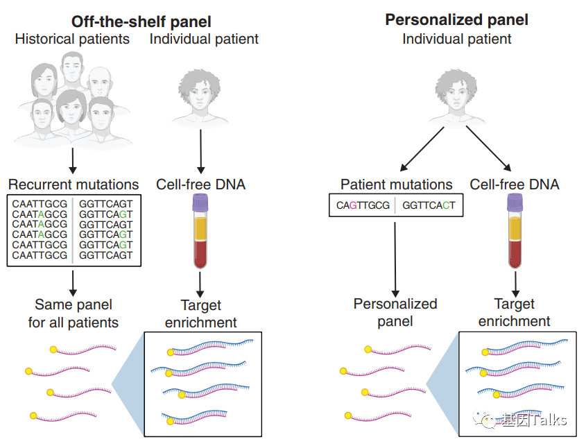 实体瘤ctDNA-MRD赛道刚验证了早期可行性,所有公司便一拥而入,竞争马上变得激烈。随着全球知名癌症NGS检测分析公司Foundation Medicine ,Inc. (FMI)的入场,该赛道变得越来越有趣。 越来越多的证据表明,实体瘤治疗后的ctDNA-MRD可预测复发,并可识别可能从辅助治疗中获益的患者。目前ctDNA-MRD检测的金标为基于肿瘤定制的个性化panel(Personalized panel),1 我们也可以称为Tumor-informed assays(肿瘤知情分析)。 ▲ 实体瘤ctDNA-MRD个性化 vs 非个性化panel Tumor-informed assays(肿瘤知情分析)为了提高其检测性能,通常会对活检肿瘤组织样本进行全外显子组测序(WES),然后选取一定数目的变异位点定制一款个性化panel供后续动态监测使用。那么,有没有可 |