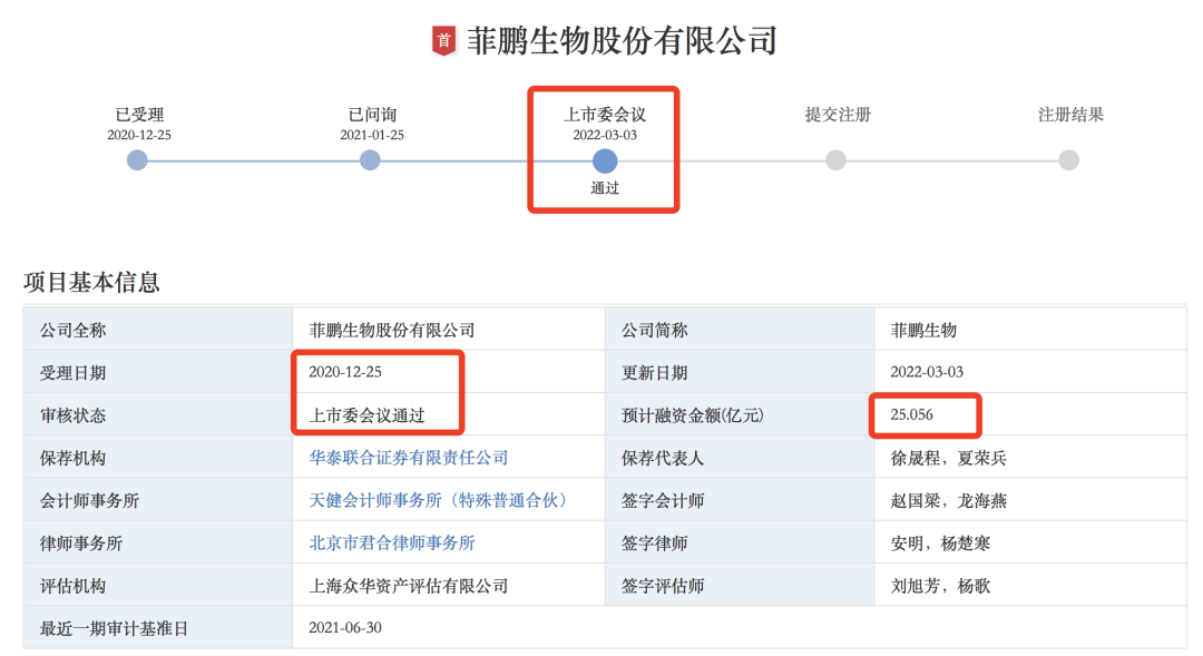 菲鹏生物创业板首发过会,拟募资25.056亿元!