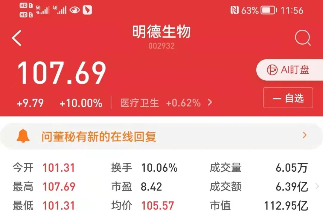 此外,武汉明德的股票,因为新冠核酸+抗原双证在手,股价又开始上扬了,截止29日上午,已连续两天涨停。