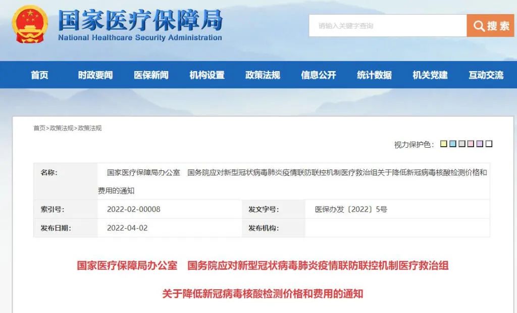摘要: 国家医保局网站4月2日消息,国家医疗保障局办公室、国务院应对新型冠状病毒肺炎疫情联防联控机制医疗救治组发布关于降低新冠病毒核酸检测价格和费用的通知。《通知》要求下调公立医疗机构新冠病毒核酸检测的政府指导 ...
