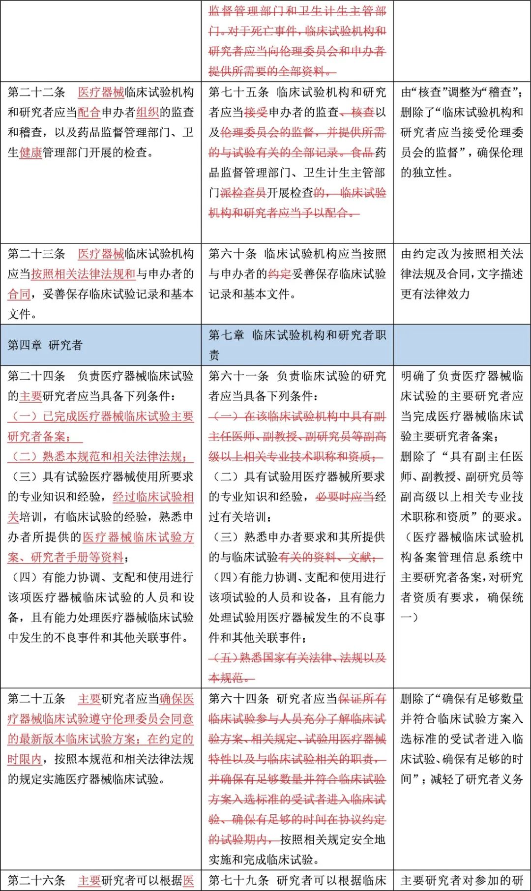 《医疗器械临床试验质量管理规范》新旧法规逐条对比与差异提示