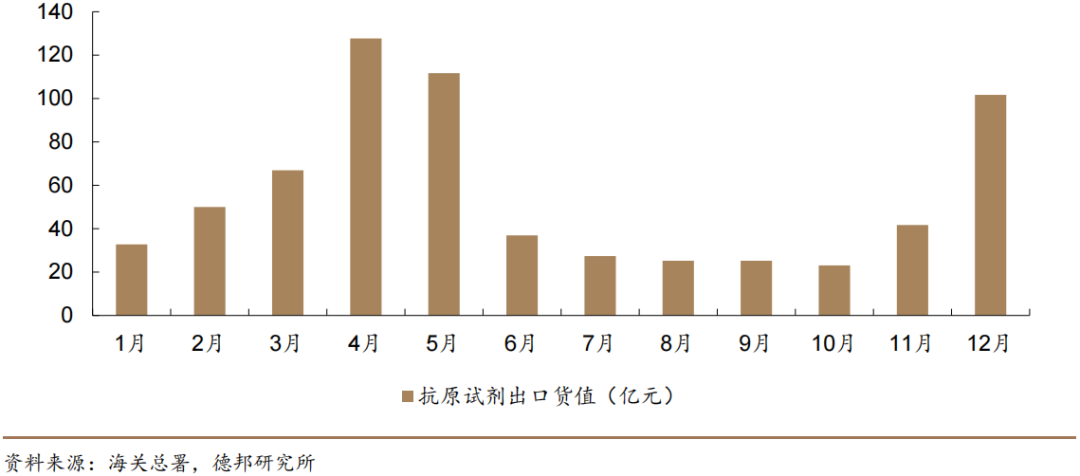 去年我国抗原检测相关产品出口额较大 图片来源:德邦证券研报