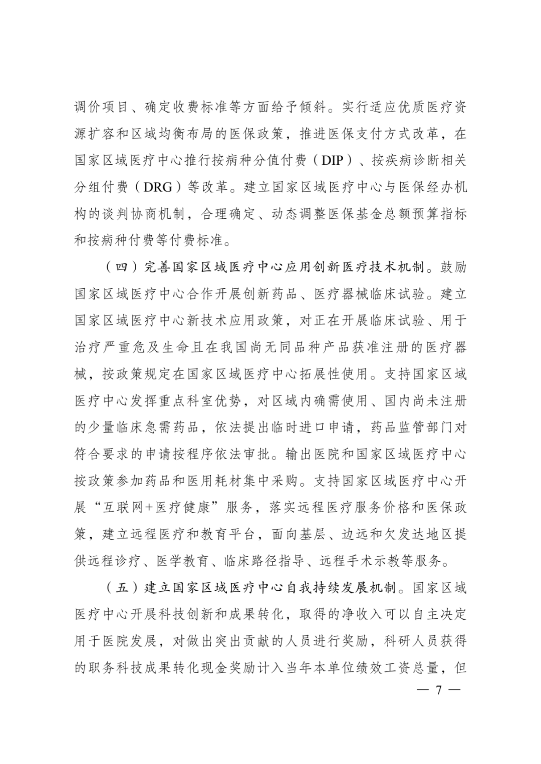 实行适应优质医疗资源扩容和区域均衡布局的医保政策,推进医保支付方式改革,在国家区域医疗中心推行按病种分值付费(DIP)、按疾病诊断相关分组付费(DRG)等改革。建立国家区域医疗中心与医保经办机构的谈判协商机制,合理确定、动态调整医保基金总额预算指标和按病种付费等付费标准。