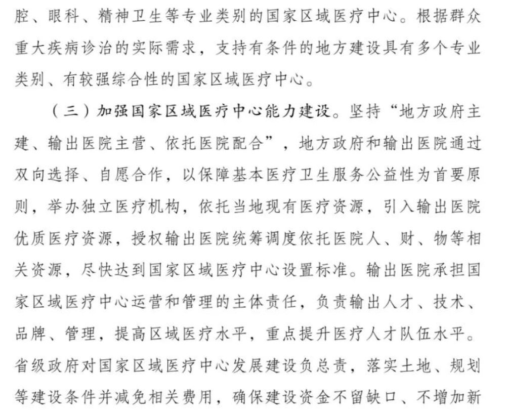 《通知》提出,到2022年底,基本完成全国范围内的规划布局,力争国家区域医疗中心建设覆盖全国所有省份。