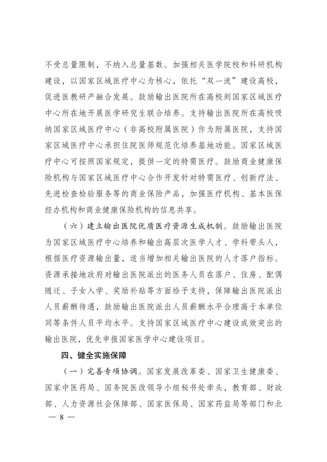 输出医院和国家区域医疗中心按政策参加药品和医用耗材集中采购。