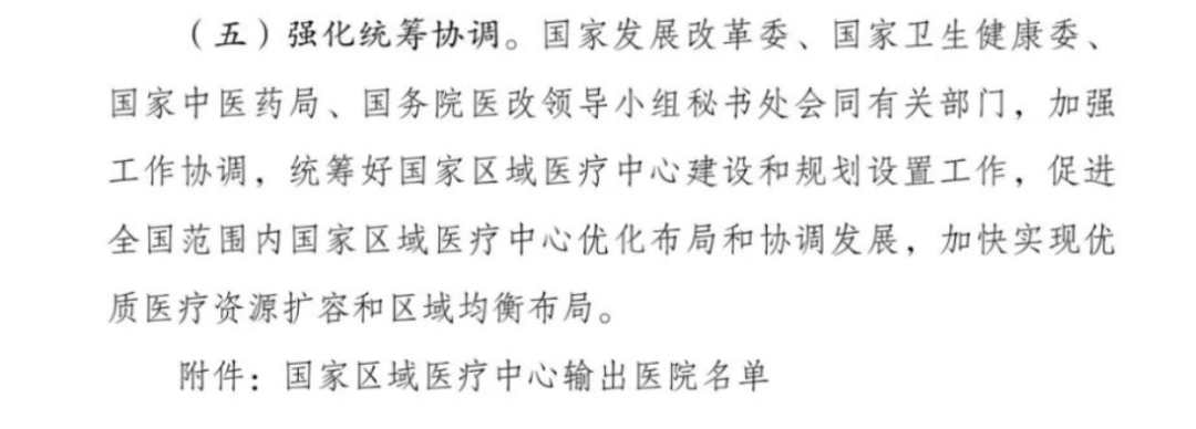值得注意的是,国家区域医疗中心的核心医院为输出医院。