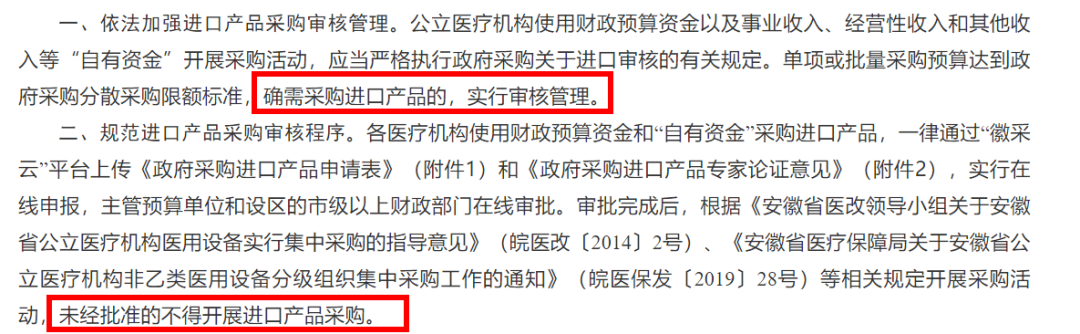 6月1日起执行,利好所有国产医疗设备企业、经销商! 4月22日,安徽省财政厅、安徽省卫生健康委员会、安徽省医疗保障局联合发布了《关于规范公立医疗机构政府采购进口产品有关事项的通知》(以下简称通知)。 据通知,安徽省财政厅等三部委要求,所有公立医疗机构,各市财政局、卫健委、医保局进一步规范进口产品政府采购行为。 加强进口产品采购管理、落实政府采购支持科技创新的政策功能......未经批准,不得开展进口产品采购;对本土国产创新产品,政府采购要率先购买,不得以商业业绩为由予以限制,进一步完善政府采购政策,支持国产医疗设备发展! 通知自2022年6月1日起执行,其他有关规定与本通知不符的,以本通知为准。也就是说,不论之前是如何规定,今后想要采购进口产品,以此通知标准。 通知提出,公立医疗机构使用财政预算资金以及事业收入、经营性收入和其他收入等“自有资金”开展采购活动的,应当严格执行政府采购关于进口审核的有关规定。单项或批量采购预算达到政府采购分散采购限额标准,确需采购进口产品的,实行审核管理。 并且,不论是使用财政预算资金,还是“自有资金”,但凡想要采购进口产品,一律通过“徽采云”平台上传《政府采购进口产品申请表》和《政府采购进口产品专家论证意见》,实行在线申报,主管预算单位和设区的市级以上财政部门在线审批。 审批完成后,根据《安徽省医改领导小组关于安徽省公立医疗机构医用设备实行集中采购的指导意见》、《安徽省医疗保障局关于安徽省公立医疗机构非乙类医用设备分级组织集中采购工作的通知》等相关规定开展采购活动,未经批准的不得开展进口产品采购。 不仅如此,通知还要求从严审核进口产品采购,重点审查专家对项目采购需求的论证意见,不具体、不明确的论证意见不作为审核依据。 之前,一些地方为采购进口产品在“专家论证”上钻空子,不仅“专家”五花八门,有医学院老师、护士以及毫不相关的科室医生,给出的理由也令人哭笑不得。 此次,通知专门提及要“重点审查专家对项目采购需求的论证意见”,显然对于这一领域的乱象,早已引起了相关部门的注意。经此一役,想必“专家们”也不敢轻易签字盖章了吧! 官方下令: 国产能够满足要求的,优先采购国产! 另外,通知还表示:对境内自然人、法人和非法人组织的科技创新产品、服务,在功能、质量等指标能够满足政府采购需求的条件下,政府采购应当购买;首次投放市场的,政府采购应当率先购买,不得以商业业绩为由予以限制。政府采购的产品尚待研究开发的,通过订购方式实施。 近年来,国家出台了各种利好国产医疗设备发展的政策,但市场对于国产医疗设备,却不是很友好。 不少国产医疗设备获得上市批准后,依旧被市场“卡脖子”,面临“无人敢买”的境地。这不仅狠狠打击了国产设备厂商的研发热情,也不利于国产设备的未来发展。 如今,官方再次“现身说法”,为国产创新医疗设备“入市”保驾护航。对于首次投放到市场的本土医疗设备,政府率先购买,并且医院还不得以往期销售量等业绩为理由限制采购,说一句大快人心不为过,对于后续落实后的情况,联盟菌也会继续关注! 目前,已有超过383个产品进入创新医疗器械绿色通道,155个创新性强、技术含量高、临床价值显著的产品上市。仅2021年就有35款创新医疗器械获批上市,成为近年来创新产品获批数量最多的一年。 如果说,技术突破是国产医疗设备自主创新的“前半生”,那么市场突破就是国产创新设备的“后半生”。当政策的口子一旦被打开,必然会有更多省份追随其后,可以肯定的是,国产创新设备的“后半生”将随着这一纸通知的下发,迎来高光时刻。 在国产设备功能、质量等指标能够满足的情况下,必须优先采购国产设备,这是毋庸置疑的,也是人心所向的。 |