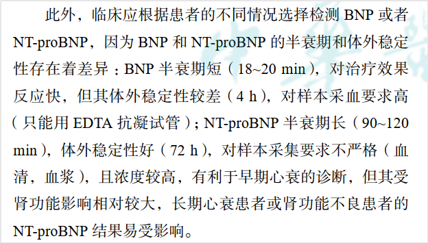 ✔对于肾功能不全者,或长期心衰患者,NT-proBNP易受影响,建议检测BNP。