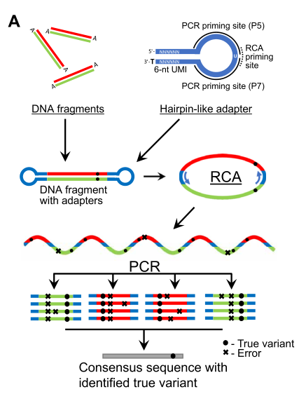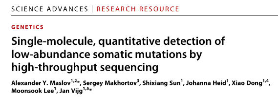 多细胞生物体细胞基因组的突变是DNA修复或复制过程中错误的必然结果。体细胞突变导至癌症,并与其他病理学有关。过去,人们曾试图开发定量分析细胞和组织中各种类型突变的分析方法。鉴于DNA测序的显著进展,人们会认为在人类或动物细胞和组织中,体细胞突变应该很容易定量检测。在很短的时间内,关于人类肿瘤体细胞突变的大量信息已经变得可用。然而,肿瘤是克隆谱系,在肿瘤的单个细胞之间共享许多突变。然而,正常组织中的突变对于每个细胞来说都是唯一的,通过测序来检测它们仍然是一个挑战,因为体细胞突变发生的丰度很低,并且通过测序时读取传播,与测序错误无法区分。克服这个问题的一种方法是使用基于单细胞的方法。然而,尽管单细胞方法是目前唯一一种允许对体细胞突变负荷进行全基因组全面评估的方法,但这种方法耗费资源和时间,价格昂贵,限制了其广泛应用。另一种方法是双链测序(duplex Seq),它基于互补DNA链的比较分析,可以准确定量地识别大量DNA中的超罕见体细胞单核苷酸变体(SNV)。虽然在技术上比单细胞测序要求更低,但Duplex-Seq抑制错误的能力仅限于一条链上错误概率的平方。 近日,来自于美国、俄罗斯、中国的研究团队在杂志SCIENCE ADVANCES上发表了一篇题为“Single-molecule, quantitative detection of low-abundance somatic mutations by high-throughput sequencing”的文章,在这篇文章中,研究团队介绍了单分子突变测序(SMM-seq),这项技术可以准确、经济高效地评估从正常细胞和组织提取的大量DNA中的体细胞SNV。 图片来源:Science Advances 主要内容 SMM-seq建库 SMM seq的关键特性是两步建库方法。首先,基于滚环扩增法(RCA)用于产生单链DNA分子,由每个特定DNA片段的多个相同DNA链的联合拷贝组成。使用具有强链置换活性的人工耐热聚合酶进行扩增。这允许进行多次变性退火延伸,以确保在称为pulse-RCA的反应中进行有效且无偏倚的放大。因为所有这些拷贝都是原始DNA片段的独立复制品,所以每个拷贝的潜在扩增错误都是唯一的,不会进一步传播。相反链的拷贝以端到端的方向排列,并在该过程的第二步中被用作聚合酶链反应(PCR)启动位点的公共间隔子分离,此时,将共聚合拷贝单独扩增并转化为测序文库。因此,由此产生的测序文库由在滚环(RC)扩增子中组装的原始DNA片段的多个独立拷贝的PCR副本组成。 SMM-seq工作流程概述 图片来源:Science Advances SMM seq数据分析和确定真突变的算法概述 来自同一片段的测序读取基于在文库制备过程中作为发夹状adapter的一部分引入的唯一分子标识符(UMI)进行识别。然后,由来自原始片段的两条链的读码组成的UMI家族被用来识别每个片段的一致序列。参考基因组上相应位置不同位点信息与该特定DNA样本的单核苷酸多态性(SNP)列表以及SNP数据库(dbSNP)进行比较。这允许筛选出种系变体,并识别潜在的de novo体细胞突变。通过分析与SMM-seq并行进行的同一DNA样本的常规测序数据,获得了种系SNP列表。最终的潜在体细胞SNV列表被进一步过滤以排除低置信度候选,然后保存以供进一步分析。 SMM-seq检测到的每个变异都属于以下类别之一:真阳性(TP)或假阳性(FP)。为了确定最佳分析参数,研究团队对每步的分析参数进行了优化,最后确定了如下图所示的算法可以最大程度上区分真突变和扩增引入的测序错误。 SMM-seq确定真突变的算法概述 图片来源:Science Advances 用SMM-seq检测ENS诱发的SNV 作为原理证明,研究团队首先对从体外接受两种不同剂量的N-乙基-N-亚硝基脲(ENS)处理的正常人IMR90成纤维细胞中提取的DNA进行SMM-seq分析,ENS是一种有效的点诱变剂。在这里,研究团队使用亚致死剂量的ENU,不会在IMR90细胞上造成任何明显的细胞死亡。对SMM-seq数据的分析显示,每个样本基因组平均约有2亿个位置符合SNV识别条件,即约占基因组7%。从IMR90 DNA中制备常规测序文库,测序,并与SMM-seq并行分析,以获得IMR90特异性种系SNP列表。结果显示,SMM-seq分析允许在所有测试条件下检测ENU的诱变效应。ENU的最低剂量(25 ug/ml)使IMR90细胞的突变频率从0.21±0.02增加到0.36±0.04 SNV/1 Mbp(P=0.005),而ENU在50 ug/ml导至突变频率增加两倍以上(0.54±0.03 SNV/1 Mbp;P=9.7×10−5). 研究团队还测试了对照组、未处理细胞和接受ENU处理的细胞中体细胞SNV的突变谱。结果显示ENU处理后突变谱发生明显变化,TA/AT和TA/CG突变的相对表达[特定于ENU]>比未处理对照细胞大2倍。因此,SMMseq能够检测由低剂量诱变剂诱导的体细胞SNV。 诱导体细胞SNV的定量检测 图片来源:Science Advances 用SMM-seq检测与衰老相关的SNV 研究团队测试了SMM-seq是否能够检测衰老过程中积累的人体组织中的生理突变负担。研究团队利用了最近发表的关于人类肝脏中年龄相关突变负荷的研究,该研究采用基于金标准单细胞的方法进行,并使用SMM-seq分析法重新分析了相同的样本。研究团队使用同一研究中每个参与者的大量DNA的全基因组序列来减去种系SNPs。SMM-seq文库是从三名年轻人(5个月、16个月和18岁)和三名老年人(56、61和77岁)的肝组织提取的DNA样本中制备的。本实验中对SMM-seq数据的分析显示,每个样本基因组平均约有7.7亿个位置符合识别SNV条件,相当于样本基因组的约26%。SMM-seq证实了通过单细胞方法观察到的体细胞突变频率的年龄相关升高。SMM-seq检测的突变频率在年轻组和老年组中分别为0.34±0.09和0.96±0.16体细胞SNV/1 Mbp(P=0.00
