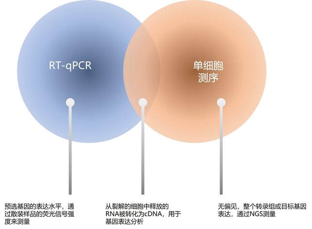 与学习任何新技术一样,单细胞测序工作流程中可能有一些元素是你目前不熟悉的。虽然像流式细胞仪、RNA-seq和qPCR等方法已经在你的流程和机构中建立起来,但用一种新方法将你的研究提高到一个新水平的可能性可以抵消学习曲线。 单细胞测序和这些方法之间的差异,包括第二代测序的实施和数据分析,不应该被最小化,然而它们之间有许多相似之处,可以让你对自己踏入单细胞测序世界的能力充满信心。过去的训练和实验,像肌肉记忆一样,有助于技术知识、动手能力和直觉。 这些,再加上实践,将使你在新方法上取得成功。 1、样品预处理 每一个生物实验,包括单细胞技术,都可以分解成几个关键步骤:准备样品,运行测定,以及观察结果。 图1 | 每个单细胞实验的三个基本步骤 单细胞测序实验的第一步,样品制备,与你作为流式细胞仪用户可能已经熟悉的步骤密切相关,即从通过酶解或机械过程、细胞分选或其他细胞分离技术消化的整个样品中生成有活力的单细胞悬浮液。 随后是细胞计数和质量控制步骤,以确保你的样品有适当浓度的活细胞,并且没有结块和死细胞碎片。如果需要,你也可以用抗体对你的样品进行染色,以标记细胞表面蛋白和其他生物分析物,或对感兴趣的细胞类型进行FACS富集。 解离样品的步骤将根据你的起始材料和你的实验目标而有所不同。额外的准备步骤可能是必要的,这取决于组织的质量、样品的丰度、细胞的大小,或需要从基因组DNA中提取细胞核进行染色质可及性分析。不管这些具体的考虑,生成高质量单细胞悬液的基本原则适用于所有的样品类型。 图2 | 描绘了细胞测量技术,如流式细胞仪和10x基因组公司的单细胞测序技术之间的相似性和差异 2、关于cDNA的三种基因表达方式 单细胞RNA-seq、RNA-seq和反转录qPCR(RT-qPCR)有一个共同的过程,即分离RNA并将其转换为cDNA进行分析。然而,每种检测方法在如何进行这一过程和最终读出结果方面有所不同。 RNA-seq和RT-qPCR都是先从大量的细胞群中分离出RNA,然后将其转化为cDNA。对于RNA-seq,cDNA被用来创建第二代测序库,从而能够测量整个转录组的基因表达。对于RT-qPCR,特定的目标从cDNA中扩增,并通过荧光测量表达水平。RT-qPCR仅限于已知目标,而RNA-seq则提供无偏见的整个转录组基因表达。 然而,两者都只提供了一个细胞群的平均基因表达的观点。使用单细胞RNA-seq,在分离RNA之前,单细胞被分离到井或单个微反应容器中。然后RNA被贴上细胞特异性的条形码,确保每个细胞的cDNA可以被追溯到原生细胞。与RNA-seq类似,条形码的cDNA被用来创建第二代测序库,使每个细胞的整个转录组的基因表达得到测量。 图3 | 单细胞测序是如何工作的 图4 | RT-qPCR和单细胞测序技术的异同 3、共同的目标,了解转录组 无论是从RNA-seq或RT-qPCR的大宗样品的RNA开始,还是从单细胞RNA-seq的单细胞开始,每种技术最终都在寻找相同的终点数据:基因表达的水平。 在这些检测中,有一个共同的数据分析方法,包括分析实验或样本条件之间的差异性基因表达,如正常与疾病。例如,比较对照样本和炎症皮肤组织的转录谱,可以发现定义炎症状态的转录特征,以及在疾病背景下失调的基因活动。有了单细胞分辨率,你可以将这些转录的洞察力提升到一个新的水平,确定是否有一个特定的细胞子集负责炎症反应。 利用你通过RNA-seq和RT-qPCR实验量化基因表达的经验中已知的基因表达标记,以及熟悉的差异基因表达分析模式--类似于RNA-seq和RT-qPCR数据--跳到单细胞基因表达可以非常直观。此外,10x Genomics软件可以帮助你顺利过渡到单细胞数据,并提供易于使用的数据分析和可视化工具。 对如何分析单细胞测序数据有更多疑问?跳转到第5章,了解我们的工具介绍和如何寻找支持。 图5 |批量RNA-seq和单细胞测序技术的异同 第二代测序技术如何用于单细胞实验 我们想对第二代测序库的构建方式做一个简短的概述。 首先,第二代测序(NGS)是一种确定DNA和RNA序列的高通量方法,具体应用于寻找序列的变异和确定基因表达模式。单细胞RNA测序仪可以通过测序和计数转录本来测量基因表达水平。 NGS文库的制备是通过PCR将测序特定的适配体添加到cDNA片段的末端。这就形成了一个cDNA片段库,其上标有10倍的特异性序列,用于将转录本映射到它们的原生细胞,以及用于测序仪内反应的测序引物。 4、用单细胞多组学提升洞察力 基于测序的读数最终是强大的,因为它可以从同一个单细胞中获得多种生物分析物。如果说单细胞基因表达以一种颜色提供高度详细的信息,那么单细胞多组学提供同样的细节,但跨越整个色谱,让你对样品有最真实的了解。 相对于传统方法,单细胞多组学简化了你需要运行的实验和需要分析的样本,以获得同等的结果。这不仅节约了宝贵的样本,而且还确保了更大的生物学准确性,因为你不需要从分裂的样本中匹配数据集,也不需要通过计算来推断不同组学之间的关系。 单细胞测序实验的最终结果非常值得我们努力去了解和胜任它的运行。随着实验的完成和数据的掌握,发现开始了。 参考文献 [1] Wagner E. Monitoring gene expression: 3. https://www.illumina.com/science/technology/ quantitative real-time rt-PCR. Methods Mol Biol next-generation-sequencing/beginners/ngs-1027: 19–45 (2013). workflow.html [2] https://www.illumina.com/science/technology/ next-generation-sequencing.html |