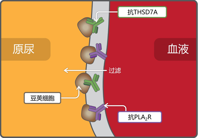 膜性肾病(MN) 膜性肾病是一种肾脏特有的自身免疫性疾病,其特点是肾小球的炎症,而肾小球通常有助于过滤液体和废物[1]。MN是肾病综合征的主要原因,主要影响40岁以上的非糖尿病白种人[1, 2]。在MN中,肾小球基底膜增厚,导至蛋白尿增加和肾脏功能的逐渐丧失[3]。除蛋白尿外,MN还可表现为脂尿、高脂血症、低蛋白血症和水肿[4]。 MN有两种形式:原发性膜性肾病(pMN)和继发性膜性肾病(sMN)。大约80%的病例是原发性的,而其余20%是继发性的[5]。pMN被认为是一种自身免疫性疾病,这在很大程度上改变了这种疾病的诊断和治疗方法。另一方面,sMN是由基础疾病引发的,如乙型肝炎、系统性红斑狼疮或癌症[6]。它也可以由使用药物如青霉胺或非甾体抗炎药引发[6]。 区分这两种形式至关重要,因为延误治疗可能导至大量或潜在的永久性并发症。三分之一的患者会出现持续的肾病综合征,另外三分之一的患者会发展为终末期肾病,而剩下的三分之一则进入自发缓解期[7]。尽管进行了肾脏移植,大约40%的病人仍然复发[7]。 对pMN的诊断 要获得pMN的鉴别诊断,重要的是通过进行肿瘤筛查排除任何继发原因,与其他与肾脏有关的自身免疫性疾病相区别,并审查患者的药物清单。 然而,根据2012年KDIGO指南,肾脏活检是诊断的标准。阳性结果通常显示肾脏中的沉积物。2009年发现的针对磷脂酶A2受体(PLA2R)的肾脏自身抗体和2014年发现的含有血栓软骨素1型结构域的7A(THSD7A)是提供pMN可靠诊断的重大突破[7]。 由于活检是相当有创的程序,PLA2R和THSD7A自身抗体的发现使得通过血液测试进行诊断的手段更加温和。随着后面提到的新型目标抗原的发现,更新的KDIGO指南有望帮助更好地诊断和管理pMN。 图1 | 肾脏的滤过屏障 PLA2R和THSD7A的结合发生在肾脏荚膜细胞的表面,这些荚膜细胞在人类肾小球中表达。插图改编自Ronco等人,2012 [9]。 抗PLA2R抗体在pMN中的作用 PLA2R是一种I型跨膜受体糖蛋白,在肾小球的荚膜细胞表面表达[10]。目前,有两种类型的PLA2R被认可:M型(肌肉型或PLA2R1)和N型(神经型或PLA2R2)[11]。 尽管对N型抗原还不太了解,需要进行更多的研究,但M型抗原已被确定为pMN中两种抗原中更主要的一种。10 M型PLA2R已在血清中检测到,是约70%的pMN患者的目标抗原[12]。 PLA2R既是pMN的预后标志也是诊断标志。这种抗体在sMN患者中没有发现,提示PLA2R对pMN的诊断分型、临床疾病活动和病程以及治疗监测具有重要的临床意义[13]。 值得注意的是,与疾病活动有很好的关联性。例如,抗体滴度越高,疾病的严重程度越高,而抗体滴度越低,越说明病情缓解或并发症较少。 图2 | 抗PLA2R抗体(免疫学疾病)和蛋白尿(临床疾病)的时间过程 通常情况下,抗PLA2抗体出现在蛋白尿和其他pMN症状发生之前。这有助于预测治疗反应和肾脏衰竭的风险。示意图改编自Ronco等人,2014 [14]。 PLA2R的可靠和特异性检测可以通过间接免疫荧光试验(IIFT)和酶联免疫吸附试验(ELISA)来完成。EUROIMMUN拥有测量pMN中这两种目标抗原的独家许可。抗PLA2R IgG IIFT包含2个BIOCHIPs:一个是表达重组PLA2R的转染人类细胞,另一个是对照转染的细胞[15]。 这两个BIOCHIPs可以进行可靠的筛选,并提供抗PLA2R抗体的定性和半定量检测[15]。在一个560名患者的队列中,发现其临床敏感性和特异性分别为77.1%和100%[15]。由于pMN中抗PLA2R的发病率在70 ~ 80%之间[5],77.1%的临床敏感性与整个患者群体很吻合。 此外,抗PLA2R IgG ELISA可对抗PLA2R的抗体滴度进行半定量或定量检测[16]。这种ELISA具有很高的预测价值,可以正确评估病程、治疗成功和复发的风险[16]。 在1034名患者的队列中确定了抗PLA2R抗体的浓度。ELISA的灵敏度和特异性分别达到96%和99.9%[16]。IIFT和ELISA都可以用血清或血浆样本以快速和简单的方式完成[15,16]。这适合于任何诊断实验室,特别是有可能实现自动化。 抗THSD7A抗体在pMN中的作用 除了针对PLA2R的自身抗体外,针对荚膜相关的N-糖蛋白THSD7A的自身抗体也被确定为pMN的特定生物标志物[17]。THSD7A已被发现在血管生成过程中介导内皮细胞迁移和管道形成[18]。 在pMN患者中,针对THSDA的自身抗体的流行率约为2.5 ~ 5%[17]。这一流行率对应于8 ~ 14%的抗PLA2血清阴性的患者。有趣的是,抗PLA2R抗体血清阳性的病人中没有一个有抗THSD7A的抗体[17]。因此,做抗PLA2R和抗THSD7A的同时检测有利于捕捉更多可能的pMN患者。 抗THSD7A抗体对pMN是特异性的,在健康对照组或其他或肾脏自身免疫性疾病患者中没有发现[17]。由于PLA2R抗体在大约70%的pMN患者中发现,在检测PLA2R1抗体的同时检测抗THSD7A抗体可以识别大约75-85%的病例[17]。因此,同时检测抗THSD7A和抗PLA2R抗体为pMN的检测提供了一种全面的方法。 pMN中其他新的目标抗原 大约15 ~ 25%的pMN病例对PLA2R和THSD7A都没有反应性,这表明存在其他的抗原靶点。通过对PLA2R阴性的pMN患者的肾脏活检样本的筛选,发现了一种新的pMN诊断生物标志物,称为具有表皮生长因子(EGF)样重复的神经组织编码蛋白(NELL-1)[19]。 虽然针对PLA2R和THSD7A的主要IgG亚类是IgG4,但发现与NELL-1相关的最常见亚类是IgG1[19]。此外,NELL-1被认为是针对PLA2R和THSD7A抗体双阴性患者的一个有用的生物标志物[19]。 在一项对活检证实的pMN尿液样本的筛选中,发现与健康对照组相比,249种蛋白质在pMN样本中被上调[20]。特别是两种蛋白质,即α-1-抗胰蛋白酶(A1AT)和阿法明(AFM)在pMN尿液中与对照组样品相比明显