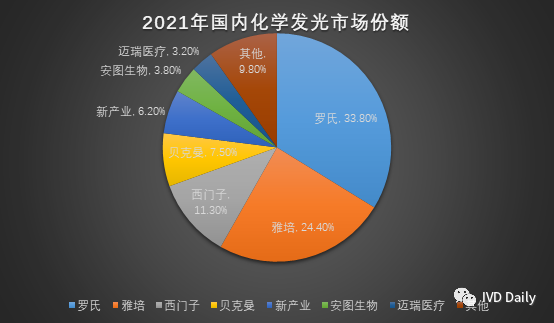 为什么说红蓝海?红这是客观存在的事实,中国14亿人口,是个人口大国,什么挣钱就往哪扎堆(2019-2021年感觉尤为明显)。蓝海,这是相对于头上的四大家来说,罗雅贝西深耕中国市场几十年,深知本土化作战的重要性,近两年都纷纷宣布各自的中国本土化建设目标,圈地建厂,合纵连横等等。这些是国产优秀企业的发展给他们带来的压力,当然上面还有政策倾斜的鞭策,但这正是化学发光的蓝海所在(正文逐一分析),作为主流方法学,项目百余种,临床收费还不错,没有哪一家能够通吃这个市场。百家争鸣,欣欣向荣才是这个市场的主旋律! 化学发光技术是目前免疫诊断技术不断更新迭代后的主流方向。化学发光产品具有灵敏性高、线性动力学范围较宽、定量检测精确、结果稳定误差小、操作简便等优势,从在临床应用中脱颖而出,成为了免疫定量分析领域的主流产品。根据Kalorama数据,预计2022年我国化学发光在免疫诊断细分市场占比将达88%。同时,免疫检测作为不可或缺的检测方法,被广泛应用于各级医院、检测机构、实验室等机构。其中肿瘤标志物、甲状腺功能、激素和传染病检测份额合计占比超70%,几乎覆盖医院的所有科室。因此,化学发光检测市场呈现出强劲的增长势头,近五年复合增长率高达24%。国内化学发光市场已超300亿RMB。随着新冠相关检测试剂的全国集中带量采购带来的前所未有的执行力和落地能力,曾经以封闭系统为优势,认为集采离发光还遥远的想法已然梦碎,安徽集采大刀一落,其威力大家有目共睹,最大的赢家据此迅速抢占市场份额,并据此机会高开高走,加大市场和研发投入,这是正循环;而错失机会的企业应当也看明白了相关部门的执行力和决心,千万不要抱有任何侥幸心理。前面提到的化学发光蓝海,这是一方面。另外,医疗新基建这个大工程是另外一个蓝海,根据迈瑞医疗投资者互动平台表示:随着医疗新基建的深入开展,相关项目开始从北上广深等大城市向 其他城市渗透、从三级医院向二级医院推进。今年以来部分地区严峻的疫情 局势不仅没有对整体新基建的推进速度造成影响,反而更加坚定了医疗新基 建的投入决心。剔除一季度已执行的商机,截至一季度末,系统中的医疗新基建待执行商机仍有 240 亿元,预计将在未来两年时间左右逐步落地。迈瑞2022年一季度推出高端全自动化学发光免疫分析仪 CL-8000i。一季度实现了几十台的新增装机,更重要的是, 70%以上的装机都在三级医院。近日,迈瑞在投资者互动平台表示立志三年内成为具有全球竞争力的IVD品牌,,发光力争所有核心项目具有全球竞争力且部分项目具有领导力。