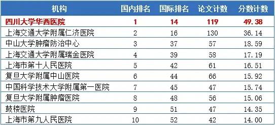 自然指数(Nature Index)最新排名发布,四川大学华西医院凭借高分,位列全球医疗机构第14位,中国医疗机构第1位。 2022年6月 自然指数(Nature Index)最新排名发布,此次数据纳入了2021年3月1日至2022年2月28日期间的统计数据,四川大学华西医院论文计数*得分119,分数计数*得分49.38,位列全球医疗机构第14位,中国医疗机构第1位,本次华西医院在Nature Index排名中再创新高。 据了解,自然指数是依托于全球顶级期刊,统计各高校、科研院所(国家)在国际上最具影响力的研究型学术期刊上发表论文数量的数据库,并且已发展成为国际公认的、能够衡量机构、国家和地区在自然科学领域的高质量研究产出与合作情况的重要指标,在全球范围内有很大影响力。 排名情况 表1自然指数(Nature Index)最新国内医疗机构排名 表2自然指数(Nature Index)最新全球医疗机构排名 成果贡献 在本期排名中,华西医院论文发表贡献度最高的期刊是Advanced Functional Materials,其次为Advanced Materials和Nature Communications。贡献度排名前15的期刊中材料、化学和综合领域期刊占比较高,医学领域期刊数量相对较少。 在nature index纳入的研究产出数据中,华西医院主要包含生命科学、化学和物理学领域,其中生命科学领域论文计数贡献最高,而化学领域分数计数贡献最高。 *论文计数(article count/AC,Count):只要所收录论文有一位或多位作者隶属于某机构或国家,就为该机构或国家增加1个AC分值,其他共同作者不影响计数。 *分数计数(fractional count/FC,Share):一篇文章的FC总分值为1.0。在假定每位文章作者贡献相同的情况下,该分值由所有作者平等共享,分别计入其隶属机构或国家/地区。如果作者有多个隶属机构,那其个人FC分值将在这些机构中再进行平均分配。(原标题为:再创新高!自然指数最新排名华西医院列全球第14、中国第1) |