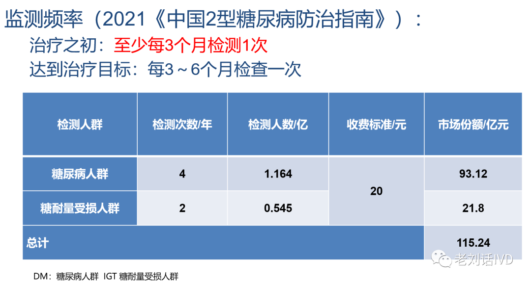 今天的细分市场是糖化HbA1c,首先还是先有几个问题开场 第一章:行情篇 一、糖化血红蛋白检测增速快吗? 增速快代表着未来的发展前景较好,我们来看Kalorama Information分析的整个IVD细分市场的CAGA(年复合增长率) 看一下数据,在Kalorama Information的统计中,HbA1c的增速,甚至超过了分子业务,当然这个是全球的业务,可以给到一个参考。毋庸置疑的答案是增速远超生免,国内市场也是一样的。 二、糖化市场蛋糕大吗? 下图是老刘根据指南推荐的检测频率以及平均的收费,大致统计了下整个糖化市场的容量,100多亿,目前整个中国的糖化市场才多少的量,空间还有多大呢,我们不妨自己可以算一算。 上面的容量计算中还没有包含正常人群的体检数量,可以想想,糖化的市场容量大吗,非常的大,蛋糕足够大,如何去吃。 以上是根据检测频率以及收费大致算出来的,让我们来看看医院的表现,老刘汇总了下EQA近些年报名参加室间质评的医院数量。 越来越多的医院参加室间质评,甚至快赶上生化的报名数量,释放的信号有哪些(1、糖化的检测越来越普遍,2、糖化市场的下沉,3、糖化检测市场的竞争在加剧,4、医院在乎检测系统的准确性) 三、糖化的市场竞争大吗? 只要蛋糕大的市场,竞争都会大,老刘统计了下EQA(卫生部室间质评)的品牌以及相应的占有率。 头部三家占比超过50%,伯乐进入中国市场最早,稳坐头把交椅,国产品牌中,惠中一骑绝尘,大有赶超爱科来之势,MQ8000的上市,检测速度已经赶上进口的型号,后生可畏。 做个小结:糖化的市场目前而言,算是三足鼎立(伯乐东曹爱科来),国产品牌后劲很足,三足鼎立的局面未来会被打破,随着糖化标准化的进展,居民意识的提高,糖化的增量很大,分级诊疗的推行,慢病管理等政策,将会让糖化的检测量下移,社区医院,县级医院等市场,未来可以重点跟进,另外患者的宣教,第三方体检机构等,也可以考虑跟进。 |