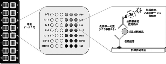 1 包被抗原 包被抗原在两种主要技术中有所不同。 在传统的(直接涂布)ELISA中,抗原通过被动吸附直接附着在板上,通常使用pH > 9的碳酸盐/碳酸氢盐缓冲液。在碱性条件下,大多数但不是所有的蛋白质都能与微孔板的聚苯乙烯表面紧密结合。 然而,如果抗原的含量很低或不能很好地粘附在塑料上,那么可以使用另一种夹层或捕获ELISA。 在捕获(间接包被)ELISA中,抗原特异性抗体被吸附在塑料上,在与抗原样品孵化时,它又与抗原结合并包被下来。抗体的附着通常使用pH值大于9的碳酸/碳酸氢盐缓冲液来实现,或者在极少数情况下使用预激活板来实现更直接的附着方法。 当使用复杂的蛋白质样品时,ELISAs夹心法已经变得非常流行,因为只有特定的抗原被包被,而不是整个蛋白质样品被包被。包被的抗原越多,检测的潜在灵敏度就越高。 ELISAs夹心法需要两种不同的抗体与抗原特异性结合(每种抗体与不同的表位反应)。一阶抗体(结合在平板上)被称为捕获抗体或包被抗体,而二阶抗体检测包被的抗原,被称为检测抗体。 这样的抗体被称为「匹配对」;它们必须经过验证才能结合使用,因为它们必须不与抗原竞争结合才能获得准确的结果。可以使用单克隆和多克隆抗体的组合;更常见的是使用单克隆作为包被抗体,多克隆作为检测抗体。 ELISAs夹心法有时比传统ELISAs需要更多的优化,但通常信噪比(S:N)更高。 1 抗原检测直接法与间接法 直接法包括用酶或替代信号分子(如荧光体)标记检测抗体。间接法包括一个额外的探针步骤,使用另一个标记有可检测标签的抗体或链霉菌素。这个额外的探针被称为二阶抗体,因为它的唯一目的是通过与检测(一阶)抗体结合来传递可测量的信号标签。 直接法通常比间接法更快,而且也消除了二阶抗体与包被抗体交叉反应的潜在背景信号。然而,即使在最好的情况下,直接法也不能提供从使用二阶抗体或Avidin/生物素系统获得的信号放大。 因此,直接法通常不如间接法灵敏,最好只在目标物相对丰富时使用。 3 生物素信号放大 生物素是一种小的(MW 244)维生素分子,很容易被修饰,因此它可以被化学地连接到蛋白质、抗体和其他感兴趣的生物分子探针上。 Avidin和Streptavidin是源于不同来源的蛋白质,但在与生物素分子非常强烈和特异地结合方面具有几乎相同的功能。此后在本文中,「Avidin」和「链霉菌素」将互换使用,指这些生物素结合蛋白中的任何一种。Avidin-生物素亲和系统经常被用于设计ELISA的标记和检测系统。 间接法的一个常见的适应性是使用Avidin-生物素化学方法放大信号,有两种方法: ➤ 第一种方法是使用生物素化的检测抗体,使用与辣根过氧化物酶(HRP)或碱性磷酸酶(AP)共轭的Avidin或链霉菌素蛋白进行探测。 ➤ 第二种方法也采用了生物素化的检测抗体,但它是用预先孵化的Avidin和生物素化的酶的混合物进行检测,这一过程被称为 「Avidin-生物素复合物」(ABC)信号放大。 这些方法的信号放大通过两种机制发生: 首先,生物素化(生物素标记)通常会使每个抗体分子产生多个生物素标签,从而使一个以上的链霉蛋白分子与每个抗体结合。由于Avidin型蛋白是四聚体,每个分子有四个生物素结合位点,这有助于结合。 其次,用酶标记链霉菌素分子或使用链霉菌素和生物素化酶的预孵化混合物的过程导至结合物具有一个以上的酶。这种多重标记的综合效果是增加最终免疫复合物中酶分子的数量。这增加了适当底物的催化作用,与传统的酶标记的二阶抗体相比,给出了更强的信号。 图2 | ABC系统可实现的信号放大示意图 4 荧光 相对而言,最近在可见光和红外线范围内稳定的荧光基团数量的扩大,使荧光信号检测成为ELISA应用中一个有吸引力的选择。这种方法在进行多重阵列时很常见,因为可以用连接到不同荧光基团的抗体同时检测一种以上的抗原。 在荧光检测中,检测抗体被直接标记,或者二阶抗体(或偶尔是Avidin)被标记用于间接法。 当使用标记的二阶抗体进行复用时,必须使用来自不同物种的检测抗体,以便区分不同的信号。检测极限通常在100 pg/孔左右,其灵敏度低于比色法或化学发光法。 图3 | 多重阵列ELISA的示意图,通过使用荧光使之成为可能 在这种情况下,12种不同的捕获抗体以印刷点阵列的形式涂在玻璃片上。每个抗体捕获不同的分析物,并由其匹配的检测抗体检测,该抗体是生物素化的。最后,所有的斑点都通过荧光标记的链霉菌素结合物(本例中是Thermo Scientific DyLight™ 649荧光基团)。 5 酶 在ELISA应用中通常使用两种酶。 碱性磷酸酶(AP)是一种大型的酶,用于少数的检测。它的大小(140 KDa)使它很难将超过一到两个分子的酶连接到每个分子的抗体或阿维丁上,这就限制了可以产生的信号量。除非正确储存和处理,否则AP也容易出现稳定性问题。 辣根过氧化物酶(HRP)是一种更常用的酶。它的小尺寸(40KDa)允许更多的分子与抗体或Avidin偶联,这可以促进信号的产生。HRP是大多数研究人员进行ELISAs的首选酶,可与各种底物一起使用(见下文),其中大多数底物比AP等价物更灵敏。 6 底物 酶信号的产生需要底物的催化作用,产生有色或荧光化合物或化学发光(可见光)。信号的测量是使用分光光度板阅读器、带有适当过滤器的荧光仪或设置为读取总光输出的发光仪。 下面将讨论每种类型的底物: 比色底物形成一种可溶性的彩色产品,相对于每个孔