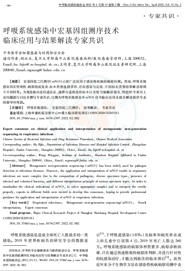 专家共识丨呼吸系统感染中宏基因组测序技术临床应用与结果解读