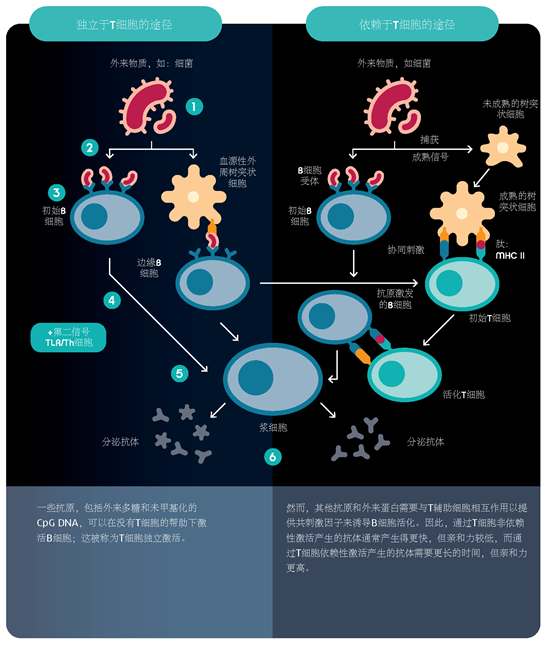 抗体是免疫系统的一个重要组成部分,在我们抵抗感染的能力和疫苗接种的效果方面起着关键作用。然而,这并不是它们效用的终点。 抗体可以作为一种生物制药产品,用于诊断测试,并作为一种分析工具进行检测。在本文中,我们将仔细看看什么是抗体,它们来自哪里,它们如何发挥作用,以及科学如何将它们在实验室中发挥作用。 1、简明抗体历史 2、什么是抗体? 抗体的基本形式是Y型糖蛋白,由四个多肽链组成,两个相同的重链和两个相同的轻链,通过二硫键连接。 抗体利用其结构的不同区域执行两种主要功能: ➤ 可结晶片段(Fc)区域与免疫系统(如吞噬细胞和赞美系统)相互作用,以促进抗原清除。 ✔ Fc区由两个恒定结构域(CH2和CH3)组成,使其能够相互作用并持续发挥其功能。 ➤ 抗原结合片段(Fab)可以识别抗原。 ➤ Fab包含四个结构域: ✔ 两个可变结构域(VH和VL),它们统称为可变片段(Fv),提供抗原特异性。 ✔ 两个恒定结构域(CL和CH1),提供一个结构框架。 每个可变结构域包含三个高变异环,称为互补性决定区(CDR1、CDR2和CDR3)。它们的高变异性使抗体能够识别几乎无限数量的可变常数抗原。 4. 当新生或记忆B细胞上的免疫球蛋白成功结合其目标抗原时,它们会增殖并分化为分泌抗体的B细胞。 5. 这些分泌型B细胞成熟为大型浆细胞,以每秒约2000个分子的速度持续分泌抗体。 6. 在血液循环中,浆细胞持续几天,但可以在骨髓中持续几个月甚至几年。 免疫球蛋白和抗体非常相似。然而,免疫球蛋白有一个跨膜结构域,并附着在B细胞的表面。B细胞的表面,而抗体缺乏这个结构域,因此被释放到循环中。 4、抗体是如何工作的? 抗体通过Fab区与它们的目标抗原结合,它们可以通过几种不同的机制发挥作用。 5、抗体的种类 在人类血清中发现有五类抗体,也被称为同种型,根据它们拥有的重链来区分。下表总结了这些情况。 IgD、IgE和IgG通常以单体形式存在,而IgA通常以二聚体形式存在,IgM以五聚体形式存在。 还有三类抗体被认可,但在哺乳动物中没有发现。 等位基因的变化,有时与某些种族群体有关,甚至在抗体亚型中也可能存在。这些被称为异型。 6、单克隆抗体与多克隆抗体 ➤ 多克隆抗体:抗体是一组非相同的抗体,它们都对同一抗原有亲和力,但与一系列不同的表位结合。 ➤ 单克隆抗体:抗体是一组来自同一母体克隆的完全相同的抗体,对同一表位有亲和力。 我们在应对入侵者时自然会产生多克隆抗体,这些抗体通常很适合于许多研究应用。然而,单克隆抗体可以在体外产生,用于需要它们的应用,例如用于治疗。 7、抗体的应用 虽然抗体是我们免疫系统的一个非常重要的产品,但它们也可以被用于有效的治疗,并为实验室中的各种检测提供有用的工具。 7.1、基于抗体的治疗方法 治疗性抗体,其中大部分是单克隆抗体,现在是增长最迅速的一类获批的生物制药药物,用于治疗包括癌症、自身免疫和炎症性疾病以及阿尔茨海默氏病。 抗体是选择针对体内特定的问题抗原,阻断它们的正常作用,从而减少或预防它们引起的病症。 通常情况下,单克隆抗体被用于治疗,因为它们的批次间差异很小,可以大量生产,而且非常具有特异性,几乎不产生交叉反应的结合。然而,它们的生产成本很高,也很耗时。 7.2、基于抗体的检测方法 利用抗体的检测主要是为了检测,可以分成两组: ➤ 检测抗体的检测法; ➤ 利用抗体来检测目标分子的检测方法。 这些包括: ➤ 酶联免疫吸附试验(ELISA),直接法和夹心法 ➤ Western blot ➤ 侧向层析(LFA) ➤ 免疫组化法,用显微镜标记 抗体对于诊断性测试特别有用,例如: ➤ 通过使用特定的抗体检测,确定样品中是否存在抗原,如病原体表面蛋白,识别活动性感染 ➤ 检测某人是否正在积极产生病原体的抗体,因此正在或已经被感染,例如新冠病毒抗体测试。 通常情况下,多克隆抗体被用于检测,因为它们很便宜,并且具有较高的整体亲和力和检测多个表位的灵敏度。然而,市面上生产的抗体存在批次间的差异问题,而且它们会因为交叉反应的结合而增加背景‘噪音’。 |