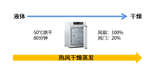 风干分为自然风干、热风干燥和仿天然风干三种工艺。在工业生产过程中,为了保证产品质量和产量的稳定性,一般采用热风干燥的方式对试剂进行干燥。对于IVD诊断试剂,一般利用有鼓风或真空功能的精密烘箱以高于室温的温度对液体进行烘干(50℃烘干80分钟),将液体风干为粘稠性的干燥物。