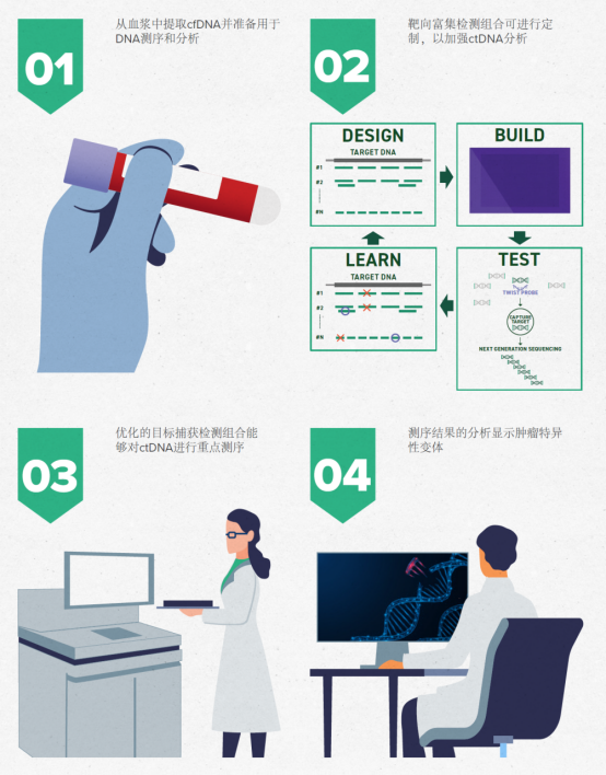 癌症是人类历史上发现的最普遍的疾病之一。虽然癌症筛查计划(如宫颈癌‘涂片’检测)已被证明是成功的,但对于大多数癌症类型,早期检测仍然是一个相当大的挑战。 传统的组织活检已经改善了癌症的预后。然而,它们是在发现肿瘤后才进行的侵入性程序,这往往发生在癌症晚期,而这个时候我们将更难进行治疗的时候。液态活检是早期癌症检测的一个令人兴奋的前沿领域,因为它们只需要一个血样,简单、快速、同时由更少侵入性。 在本文中,我们探讨了液态活检的重要性及其在癌症诊断和监测中的应用。 01 什么是液态活检? 液态活检包括对血液和尿液等体液进行采样和分析,以检测和分析癌症。液态活检中最常寻找的生物标志物是循环肿瘤DNA(ctDNA)。 富集检测组合增强了液态活检中ctDNA的测序能力。 03 液态活检的应用 3.1、用于检测靶向捕获的ctDNA 当样本中存在极少量的ctDNA时,可以设计高性能的探针检测组合来富集ctDNA并检测特定的癌症类型。这些探针板可以设计和构建,以涵盖广泛的尺寸、靶向区域和复用要求。 主要优点包括: ➤ 高均匀性和复现性; ➤ 快速定制和优化; ➤ 可扩展到>100万个探针。 3.2、用于癌症检测的甲基化测序 DNA的甲基化影响着基因表达和细胞行为。DNA甲基化的模式可以有很强的组织和肿瘤特异性。因此,通过NGS分析ctDNA甲基化可用于特定癌症的早期检测[4]。 3.3、用于检测癌症的外显子组分析 大多数致癌突变发生在基因组中编码蛋白质的那1%。由于全外显子组测序(WES)可以对蛋白质编码区进行集中、高效的测序,因此可以用来检测许多与癌症有关的突变,可以成为早期癌症检测的一个有用工具[5]。 外显子组分析可用于发现多基因特征的概况,如: ➤ 突变谱 ➤ 拷贝数变异(CNV) ➤ 单核苷酸变异(SNV) 3.4、无创的最小残余疾病(MRD)检测 有时,即使在明显缓解后,癌细胞也会持续存在,并继续导至复发。MRD检测的目的是检测这些微小的癌症痕迹。 常规液态活检可以检测和描述多种癌症类型的MRD,有可能提供来自单个或多个位置的肿瘤异质性的全面分子概述[6,7,8]。 |