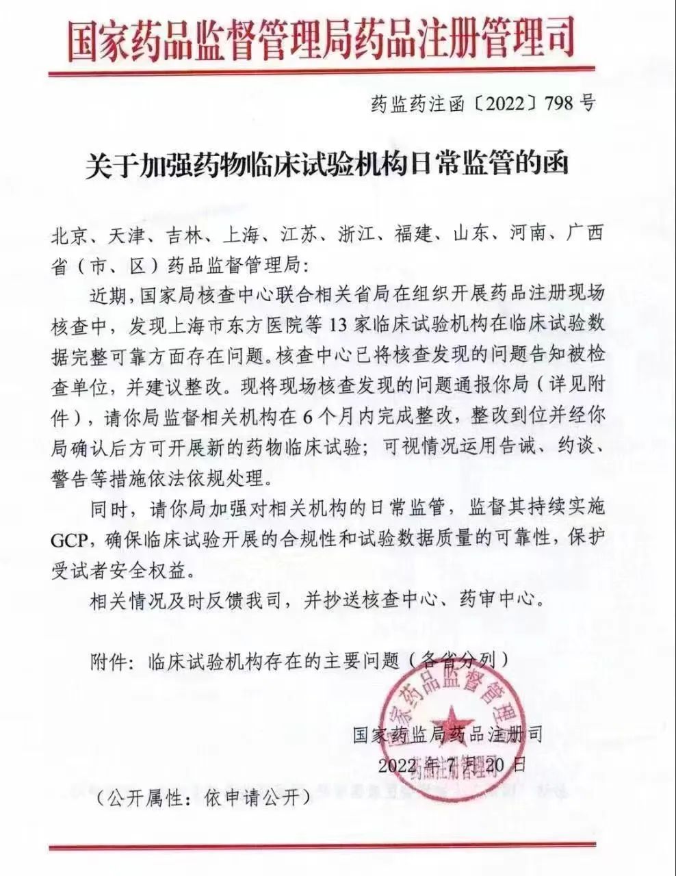 距离7.22核查风暴已经过去7年了! 七年之痒过后,扮演多年“Hello Kitty” 的CFDI在半年前被FDA在ODAC会议上“碰瓷”后终于回归本色!在过去一年多的“注册研究核查”,“有因核查”和“常规检查”中对临床试验机构举起“屠刀”。十省市十三家临床试验机构被勒令整改,其中不乏广受创新药企追捧的“明星”中心。 质量是临床试验的生命线!这句话在7.22”三个最严“核查风暴过后依旧值得从业人士铭记在心,通过炒作也许可以赢得一时的“红利”,但只有脚踏实地,心有星辰才能不负初心。 3 5 *新乡第一人民医院 10 *xx医院 12 |