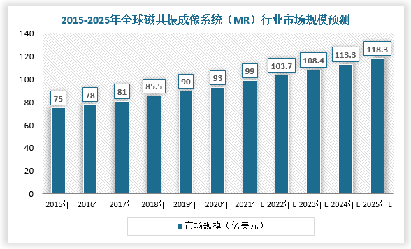 近年来,全球MRI市场呈现稳步增长的趋势,据统计,2020年全球磁共振成像设备市场规模为93亿美元,同比上涨3.33%,年均复合增长速度为4.4%。预计2030年将达到118.3亿美元。
