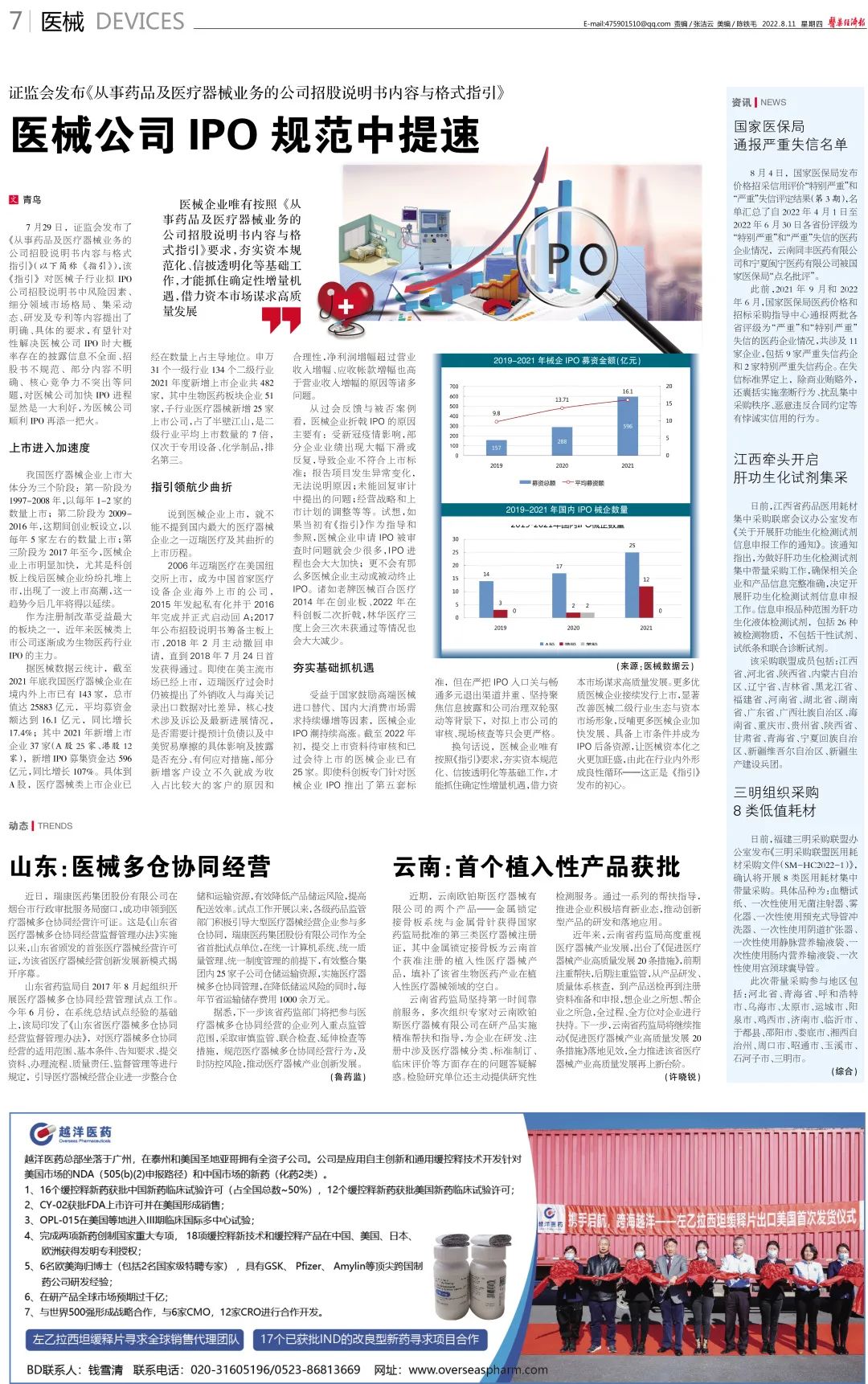 医药经济报 7版医械 数据来源:医械数据云 7月29日,证监会发布了《从事药品及医疗器械业务的公司招股说明书内容与格式指引》(以下简称《指引》),该《指引》对医械子行业拟IPO公司招股说明书中风险因素、细分领域市场格局、集采动态、研发及专利等内容提出了明确、具体的要求,有望针对性解决医械公司IPO时大概率存在的披露信息不全面、招股书不规范、部分内容不明确、核心竞争力不突出等问题,对医械公司加快IPO进程显然是一大利好,为医械公司顺利IPO再添一把火。 01 上市进入加速度 我国医疗器械企业上市大体分为三个阶段:第一阶段为1997-2008年,以每年1-2家的数量上市;第二阶段为2009-2016年,这期间创业板设立,以每年5家左右的数量上市;第三阶段为2017年至今,医械企业上市明显加快,尤其是科创板上线后医械企业纷纷扎堆上市,出现了一波上市高潮,这一趋势今后几年将得以延续。 作为注册制改革受益最大的板块之一,近年来医械类上市公司逐渐成为生物医药行业IPO的主力。 据医械数据云统计,截至2021年底我国医疗器械企业在境内外上市已有143家,总市值达25883亿元,平均募资金额达到16.1亿元,同比增长17.4%;其中2021年新增上市企业37家(A股25家、港股12家),新增IPO募集资金达596亿元,同比增长107%。具体到A股,医疗器械类上市企业已经在数量上占主导地位。申万31个一级行业134个二级行业2021年度新增上市企业共482家,其中生物医药板块企业51家,子行业医疗器械新增25家上市公司,占了半壁江山,是二级行业平均上市数量的7倍,仅次于专用设备、化学制品,排名第三。 02 指引领航少曲折 说到医械企业上市,就不能不提到国内最大的医疗器械企业之一迈瑞医疗及其曲折的上市历程。 2006年迈瑞医疗在美国纽交所上市,成为中国首家医疗设备企业海外上市的公司,2015年发起私有化并于2016年完成并正式启动回A;2017年公布招股说明书筹备主板上市,2018年2月主动撤回申请,直到2018年7月24日首发获得通过。即使在美主流市场已经上市,迈瑞医疗过会时仍被提出了外销收入与海关记录出口数据对比差异,核心技术涉及诉讼及最新进展情况,是否需要计提预计负债以及中美贸易摩擦的具体影响及披露是否充分、有何应对措施,部分新增客户设立不久就成为收入占比较大的客户的原因和合理性,净利润增幅超过营业收入增幅、应收帐款增幅也高于营业收入增幅的原因等诸多问题。 从过会反馈与被否案例看,医械企业折戟IPO的原因主要有:受新冠疫情影响,部分企业业绩出现大幅下滑或反复,导至企业不符合上市标准;报告项目发生异常变化,无法说明原因;未能回复审计中提出的问题;经营战略和上市计划的调整等等。试想,如果当初有《指引》作为指导和参照,医械企业申请IPO被审查时问题就会少很多,IPO进程也会大大加快;更不会有那么多医械企业主动或被动终止IPO。诸如老牌医械百合医疗2014年在创业板、2022年在科创板二次折戟,林华医疗三度上会三次未获通过等情况也会大大减少。 03 夯实基础抓机遇 受益于国家鼓励高端医械进口替代、国内大消费市场需求持续爆增等因素,医械企业IPO潮持续高涨。截至2022年初,提交上市资料待审核和已过会待上市的医械企业已有25家。即使科创板专门针对医械企业IPO推出了第五套标准,但在严把IPO入口关与畅通多元退出渠道并重、坚持聚焦信息披露和公司治理双轮驱动等背景下,对拟上市公司的审核、现场核查等只会更严格。 换句话说,医械企业唯有按照《指引》要求,夯实资本规范化、信披透明化等基础工作,才能抓住确定性增量机遇,借力资本市场谋求高质量发展。更多优质医械企业接续发行上市,显著改善医械二级行业生态与资本市场形象,反哺更多医械企业加快发展、具备上市条件并成为IPO后备资源,让医械资本化之火更加旺盛,由此在行业内外形成良性循环——这正是《指引》发布的初心。 |