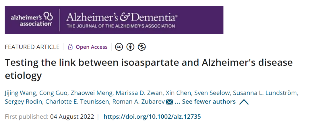 一个国际研究小组发现了一种通过血液分析诊断阿尔茨海默病的新方法,有可能揭示该疾病的潜在原因并阻止其发展。 卡罗林斯卡学院8月5日消息 由卡罗林斯卡学院(Karolinska institute,KI)的一个研究小组领导的一个国际研究团队,利用蛋白质组学和其他先进的分子生物学工具,发现了一种通过血液分析诊断阿尔茨海默病的新方法,有可能揭示这种疾病的潜在病因,并阻止其发展。这项研究发表在《阿尔茨海默病与失智症》(Alzheimer's & Dementia)杂志上。 研究于2022年8月4日发表在《Alzheimer's & Dementia》(最新影响因子:16.655)杂志上 当我们变老时,我们体内的蛋白质也会变老,包括血液中的长寿蛋白质,比如白蛋白。蛋白质老化的主要表现之一是氨的损失,称为脱酰胺(Deamidation)。随着脱酰胺产物的积累,蛋白质分子失去其结构、功能和溶解性,并开始聚集。
