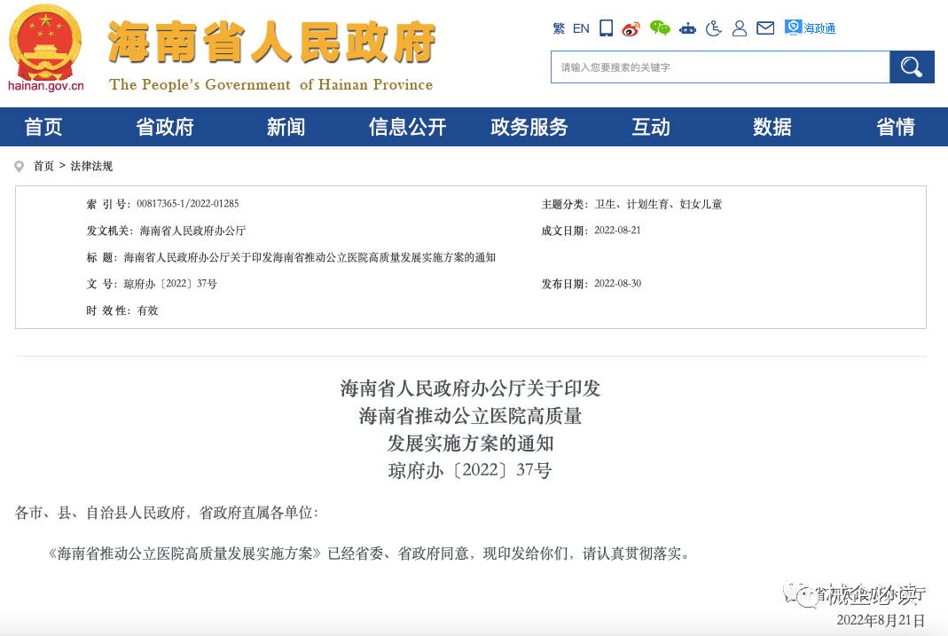 | 2022年8月30日,海南省人民政府办公厅发布了《海南省推动公立医院高质量发展实施方案》(下称《实施方案》)的通知。  另一项重磅提议为:推进公立医院去行政化改革,取消公立医院的行政级别,如果后续在全国范围内推广,将对中国医疗产生极为深远的影响。《实施方案》明确指出,要完善公立医院运行机制,推进公立医院去行政化改革,取消公立医院的行政级别,逐步推行院长职业化和聘任制,全面落实公立医院的经营管理自主权,实行全员聘用管理。《实施方案》还指出,行政部门负责人一律不得兼任公立医院领导职务;此外,需在后续的发展过程中积极探索三级公立医院总会计师委派制度。对该条方案的解读主要集中在两个方面:去编制和经营自主。近些年,医生“去编制化”的传言不绝于耳,疫情的突然暴发使得公立医院的优越性得到了展现,在一定程度上延缓了原有计划。但从长远角度来看,弱化医生的编制身份还是大势所趋。(一)为什么海南能提出公立医院去行政化、去编制化?“这不是海南最新提出的,此前国家早有提及,只是后来不提了。海南提出去行政化,就是想往这个方向去做,去年海南启动以海南省人民医院为试点的改革,核心就是去行政化,因为医疗机构不能像机关事业单位一样管理,要给医疗机构松绑。”相关人士表示。2011年4月初,中央确定了一张事业单位分类改革的时间表。按照改革时间表,到2015年,中国将在清理规范基础上完成事业单位分类;到2020年,中国将形成新的事业单位管理体制和运行机制。按照事业单位分类意见,公立医院是承担非营利医疗等公益服务的公益二类事业单位,将逐步实行编制备案制,逐步取消行政级别,明确规定新设立的一律不予明确行政级别。“需要赋予医院更多的自主权,从岗位的设置、人员招聘到职称评定,只有这样,才能打破目前的条条框框,打破编制对公立医院的束缚,让公立医院发展更有活力。以前没有去行政化,医院干部任用都要论资排辈,老人占用岗位,但是活力和动力不足,现在去行政化,能上能下,能进能出,绩效考核,末尾淘汰。”(二)实行全员聘用管理,去编制后,医生还是铁饭碗吗?对于这个问题,有业内人士的观点是:无论是否拥有编制,只要拥有合格(注意不是优秀)的技术水平,医生仍然是铁饭碗。这主要源于医生这个工种技术壁垒高、成才周期长等特点,绝大多数时候并不容易被替代。此外,即使没有编制,医生的职称体系也暂时不会被打破。在此情况下循序渐进地发展,仍然有清晰明确的上升空间。未来,医院的人员不再实行编制管理,而是人员总量管理,医院也不存在所谓编外人员了。同时,人员总量管理人员和编制内人员,在岗待遇、五险一金和退休后的五险一金都没有区别。具体会怎么发展,现在谁都说不清楚,只能结合过往的经验来谈。一般来说,推行比较彻底的改革时,往往会采取“老人老办法,新人新办法”的模式。故此,对于早些年已经获取编制的老医生来说,应该不会出现明显变化;但尚未入职的新医生,或许会受到改革的影响。这其实算是“老生常谈”,在海南发布之前就有多地发布过相关政策。 医院是不是应该市场化?医院市场化是好是坏?是人们都在讨论的一个问题,对于医院市场化的评价褒贬不一。有人说:如果把医院推向市场化,看病难,看病贵真正成为现实版的杀人场。医院最核心的宗旨是救死扶伤,市场化们核心宗旨是逐利。也有人说:社会办医目的就是可以满足更多人民群众的就医需求,医院的市场化可以促进医院不断的技术创新以及提升医疗服务质量。如今欧美、日本、以及我国台湾等地区已经建立了完善的医疗保障体系,而医保部门所承担的职责是代表患者向医院卖服务,不管是公立医疗还是社会办医,当患者需要服务室都是需要支付费用,只是这笔费用大部分有医保承担。其实在美国、日本和我国台湾等国家地区,民营医院总体数量占比已经达到80%以上,市场化程度很高,世界绝大部分国家和地区已经把医疗服务当做成“买卖”一般,也证明了这些国家地区的市场化程度。公立医院的公益性和市场化问题是我国公立医院改革推进中的复杂问题。深化公立医院改革,必须探讨政府如何办好公立医院,厘清公立与公益的边界,界定基本医疗服务的内涵,寻求公立医院改革的突破口。近年来,对于公立医院的改革通常是在这两者之间找平衡,力求探索出全新的管理模式。包括海南在内的各种改革究竟会发挥出多大作用,或将直接影响未来医改的发展方向。