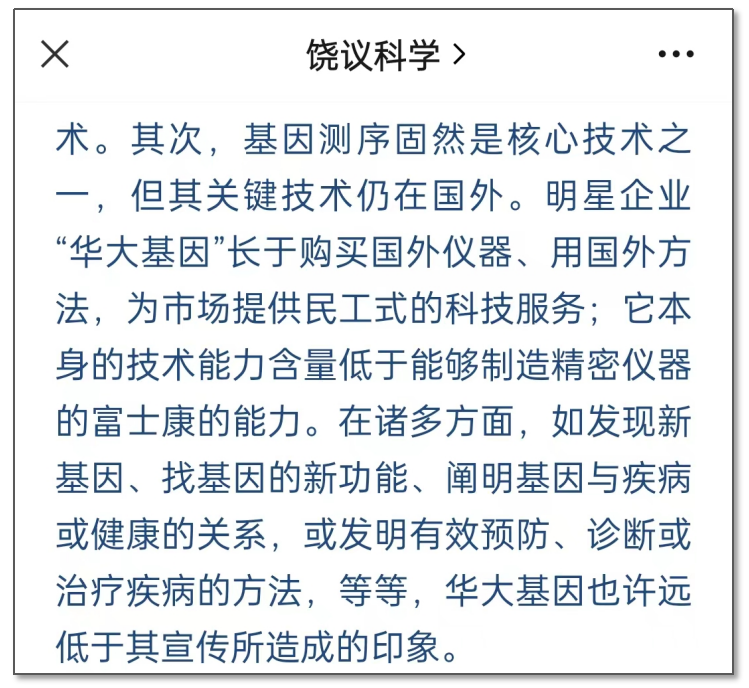 近日,肿瘤NGS头部企业泛生子拟私有化的新闻,引起广泛关注。尽管泛生子公关团队有所准备,在公告发布当天,各大财经媒体就以“精准医疗龙头泛生子宣布收到私有化要约,迈出中概股破局勇敢一步”为题刷屏,引导至中美争端下中概股的普遍宿命。即使定调如此,还是引来业内一阵叹息。华大基因,及其集团掌门人尹烨,在知名教授饶毅的连续炮轰下,也只是“谢谢指教”。贝瑞基因,完成对赌之后,业绩连同股价,让人扼腕叹息。企业之外,山西某省级医院,医药代表向孕妇推销无创产前基因检测升级版本NIPT-Plus,钱打到个人账户,后生下唐氏儿,理赔保费从个人账户直接打出。医院却拒不承认该现象,又一起罗生门事件。知名媒体虎嗅,近日再次剑指无创产前基因检测(NIPT),回顾NIPT发展之路,同时指出若干乱象,还引导至“警惕人工选择完美胎儿”这一社会伦理问题。同样是虎嗅,2018年一篇《华大癌变》,在业内引起轩然大波。 在知名问答社区,知乎平台,搜索“基因检测”,输入框提示及搜索结果如下: “吹上天了!华而不实!都是资本炒作!都是泡沫!等着瞧吧!”每个人、每群人对基因检测及其检测机构、行业,都有自己的认知理解,并貌似根深蒂固。从临床应用看,基因检测可以覆盖一个人的生老病死,方方面面,撑起万亿市场的想象。“你”从还未出生,还没有构成真正意义“人”的时候,就可以通过胚胎植入前遗传学筛查(PGT)筛选健康的胚胎,进行植入;孕育12周,就可以通过无创产前基因检测(NIPT)对胎儿常见染色体遗传病进行检测;孕期内,如果超声等指标异常,可以通过侵入性取样,再次对胎儿进行染色体遗传病检测;胎儿出生后,需要进行耳聋基因检测、地贫基因检测等;新生儿或幼儿期,如果表型和行为有异常,可以进行基因检测;孩子的天赋,未来适合运动、读书、艺术,可以进行基因检测;笔者清楚的记得,早年在潍坊出差时,在最繁华的十字街口,广播大声播放着“儿童天赋基因检测...”的广告,梦幻之极。当一个技术似乎无所不知、无所不能,它要么是神技,要么是骗子。天才与疯子也仅是在一线之间。夸大、诱导,巨额经济利益,巨大信息差,结论似是而非,解释一抹万花油。 利用高科技来耍流氓,更具有隐蔽性,比直接耍流氓更流氓:当你发现家里有一只蟑螂,说明家里已经藏着无数只蟑螂。这是人们的普遍认知。由此引申出对技术、对公司、对行业的直觉判断。 试图证明自己不是老鼠屎、不是蟑螂、没有原罪,不仅无效,而且恶心自己,玷污了高科技企业的身份。在坊间,华大基因、诺禾致源等国内头部企业就带有基因界“富士康”的名号,言之没有核心技术、只是代加工、流水线作业,长期给外国人打工。国家有国家的认证,地区高新、国高新的牌子就摆放在这。光拿牌子可能无法使人说服。打铁还需自身硬,大家近几年被卡脖子的问题困扰,憋了一股恶气。能切实解决卡脖子问题的企业,无愧是高新企业了吧?这样的企业不多,华为都还没从卡脖子的问题中挣脱出来;而长期处于议论漩涡的华大基因的兄弟企业,华大智造,应该能算一个。不仅在国内稳扎稳打,一步一个脚印;在国际上也赢了和行业老大illumina的官司,开始收割海外市场。赢得了高科技公司的光环,就可以高枕无忧,不惹人争议了吗? 自嗨是没有意义的,糊弄资本也会败于资本,愚弄大众终会自砸饭碗。资本寒冬、价值倒挂、疫情黑天鹅事件,会过滤掉那些哗众取宠、华而不实的企业。至于为什么基因检测这么多年会遭遇了这么多偏见、质疑、误解?九嫂说,哪有什么原罪,只是行业漫长发展中的一段剪影罢了。 |