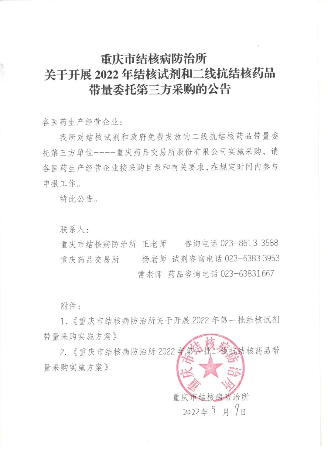近日,重庆市结核病防治所发布结核试剂带量采购公告。为有序组织实施结核试剂带量采购工作,进一步提高采购效率,促进形成合理市场价格,制定本方案。 一、采购目录 本次采购共4个采购包具,体情况如下: 注:具体采购总份数,以预算采购资金与入选产品价格而定。本项目预算仅为估量值,实际使用过程中按照实际发生额进行结算。 二、产品参数要求 (一)采购包1:结核分枝杆菌利福平耐药突变检测试剂盒 1.可检测结核分枝杆菌复合群rpoB基因507~533共27个氨基酸密码子区域内(81bp,利福平耐药决定区)的突变。 2.储存条件及有效期:-18℃以下避光保存,有效期至少12个月。 3.野生型和突变型检测限为2×104菌/mL;可以检出含40%及以上突变株比例的不均一耐药菌株。 4.野生型符合率:100%(参考品),突变型符合率:100%(参考品)。 5.熔解峰Tm值波动范围不超过±1℃。 6.利福平试剂盒的临床试验与药敏试验结果相比较,临床灵敏度(真阳性率)≥95%,临床特异性(真阴性率)≥95%。 7.检测效率:在获得DNA样本后,3小时内完成检测。 8.PCR扩增检测全程闭管操作,减少PCR产物污染的可能性。 9.PCR扩增与产物分析仪器自动完成,无需PCR后处理,仪器自动给出结果。 10. 基于样本熔点值与阳性对照熔点值是否有差异来判定是否含有突变。 11. 需取得CFDA的三类体外诊断试剂注册证。 (二)采购包2:结核分枝杆菌rpoB基因和突变检测试剂盒 1.用途:一是用于从患者痰液和痰沉淀样本中同时检测结核分枝杆菌复合群DNA和利福平耐药基因(rpoB);二是试剂在GeneXpert系统上运行的一种巢式实时荧光定量PCR技术来完成检测。 2. 采用实时定量荧光检测。 3.储存条件及有效期:可在2-28℃保存,有效期至少18个月。 4.检测时间:对于结核分枝杆菌复合物和利福平耐药基因的检测,从原始的患者样本加入到系统中到获得检测结果的时间不超过2.5小时。 5.整个检测流程无需三个独立的PCR房间。核酸提取、核酸扩增和目标检测在一个独立封闭的试剂盒内完成,以最小化扩增和样本污染的可能性。 6.试剂盒内置阳性样本处理质控和探针检查质控。基于分子信标原理,试剂盒内至少含6条荧光探针。 7. 需取得CFDA的三类体外诊断试剂注册证。 (三)采购包3:结核分枝杆菌复合群核酸检测试剂盒 1.采用实时荧光PCR法检测结核分枝杆菌特异的IS6110基因。 2.储存条件及有效期:2-8℃避光保存,有效期至少18个月。 3.对国家参考品检测:阴性参考品和阳性参考品符合率均为100%,CV(%)≤3%。 4.试剂盒最低检出限为:1×101菌/ml。 5.阳性符合率≥95%,阴性符合率≥95%,总符合率≥95%。 6.PCR扩增检测全程闭管操作,减少PCR产物污染的可能性。 7.加入UNG酶,有效防止污染,杜绝假阳性。 8.PCR扩增与产物分析仪器自动完成,无需PCR后处理,仪器自动给出结果。 9.体系中加入外源内控,有效防止假阴性。 10.试剂无需分装,为预分装干试剂。2-30℃条件下运输。 11.需取得CFDA的三类体外诊断试剂注册证。 (四)采购包4:结核分枝杆菌异烟肼耐药突变检测试剂盒 产品参数要求: 1.可检测异烟肼耐药突变位点的检测区域范围为:ahpC启动子区、inhA94密码子、inhA启动子区位点以及katG315密码子。 2.储存条件及有效期:-18℃以下避光保存,有效期至少12个月。 3.野生型检测限为2×103菌/mL。 4.可以检出含40%及以上突变株比例的不均一耐药菌株。 5.野生型符合率:100%(参考品),突变型符合率:100%(参考品)。 6.重复性:Tm值波动范围不超过±1℃。 7.异烟肼试剂盒的临床试验与药敏试验结果相比较,临床灵敏度(真阳性率)≥90%,临床特异性(真阴性率)≥96%。 8.检测效率:在获得DNA样本后,3小时内完成检测。 9.PCR扩增检测全程闭管操作,减少PCR产物污染的可能性。 10.PCR扩增与产物分析仪器自动完成,无需PCR后处理,仪器自动给出结果。 11.基于样本熔点值与阳性对照熔点值是否有差异来判定是否含有突变。 12.需取得CFDA的三类体外诊断试剂注册证。 三、采购周期 采购周期为一年,自重庆市结核病防治所(以下简称“市结防所”)与供货企业购销合同签订并生效之日起计算。若市结防所不能如期完成采购合同约定数量,采购周期将顺延,但顺延时间不超过3个月,且最终采购数量不少于合同约定数量的90%;若市结防所提前完成合同约定数量且需要再次购买产品时,在本采购周期结束前仍按采购约定的成交价执行。 四、采购方式 采用竞价或议价的方式进行采购。 (一)同采购包有3家及3家以上企业申报的,采用竞价方式确定入选品种及成交价格。 (二)同采购包少于3家企业申报的,采用议价方式确定入选品种及成交价格。 |