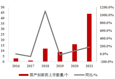 从国内医改后获批的国产一类新药来看,2021年销售额已经达到263.2亿元,同比增长52.5%,更是2017年该类新药销售额的1133倍。