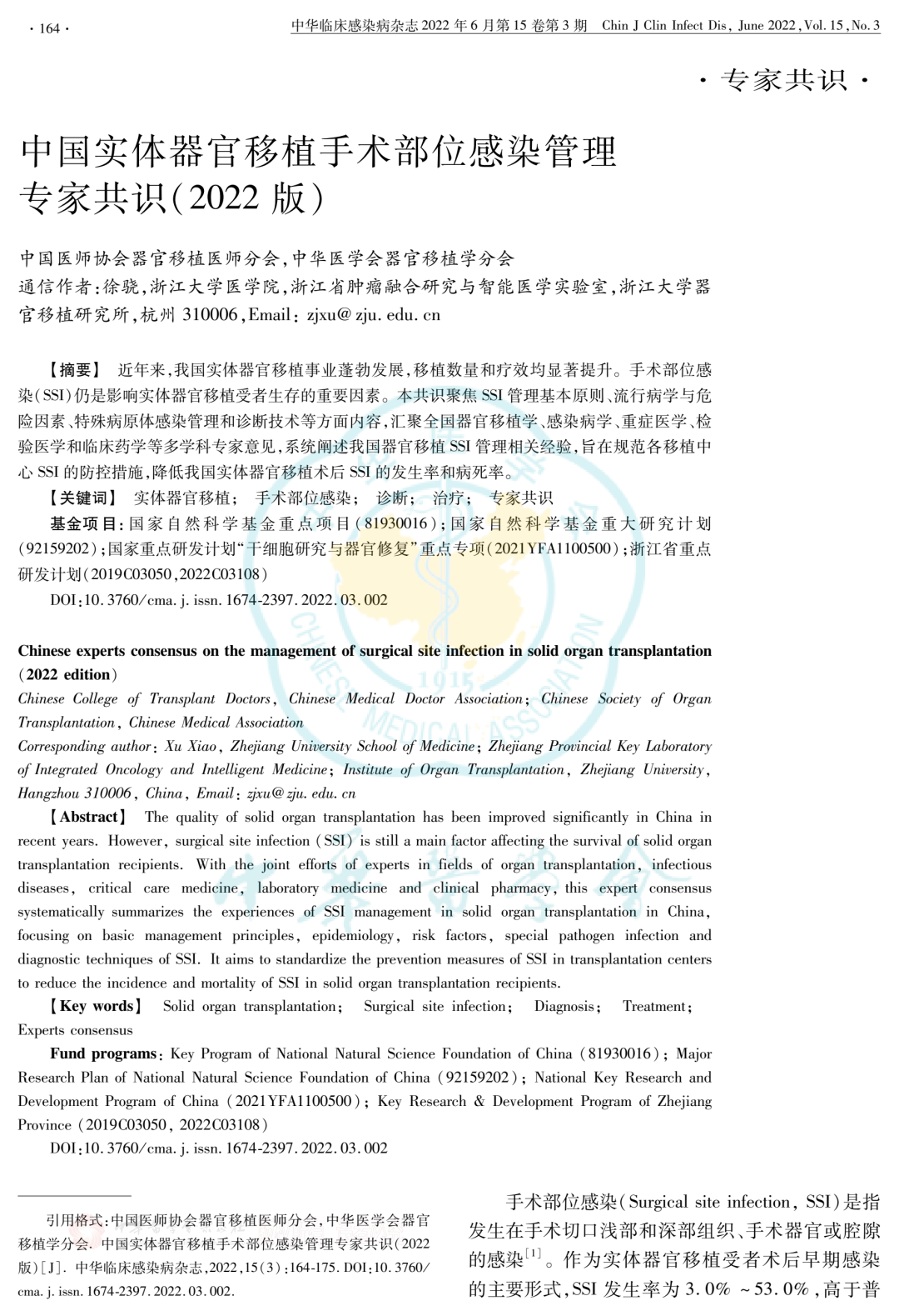近日,“中国实体器官移植手术部位感染管理专家共识(2022版)”在《中华临床感染病杂志》发布。浙江大学医学院徐骁教授为通信作者。文中明确指出mNGS具有辅助诊断意义:“mNGS可直接对手术部位感染组织、脓液、分泌物、引流液和血液等样本进行病原体检测,具有敏感度高、检测时间短和信息量大等优势。”