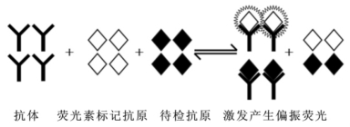 荧光偏振免疫测定(fluorescence polarization immunoassay,FPIA)是一种均相竞争荧光免疫分析法。 经激发光作用下发射出的荧光经过偏振仪形成偏振光,这一偏振光的强度与荧光素受激发时分子转动的速度成反比。游离的荧光素标记抗原分子小,转动速度快,击发后发射的光子散向四面八方,产生的光信号就弱;相反,与抗体大分子结合的荧光素标记抗原分子大,转动慢,光信号强。 因此,如果病人样本中的抗原浓度较低,与抗体结合的抗原就少,而荧光素标记的抗原与抗体结合的就多,经此竞争结合反应达到稳态后,则反应混合物中与抗体结合的荧光素浓度就高,偏振则强;反之,偏振则弱。 图 雅培TDx血药检测仪,在90年代就卖到30多万