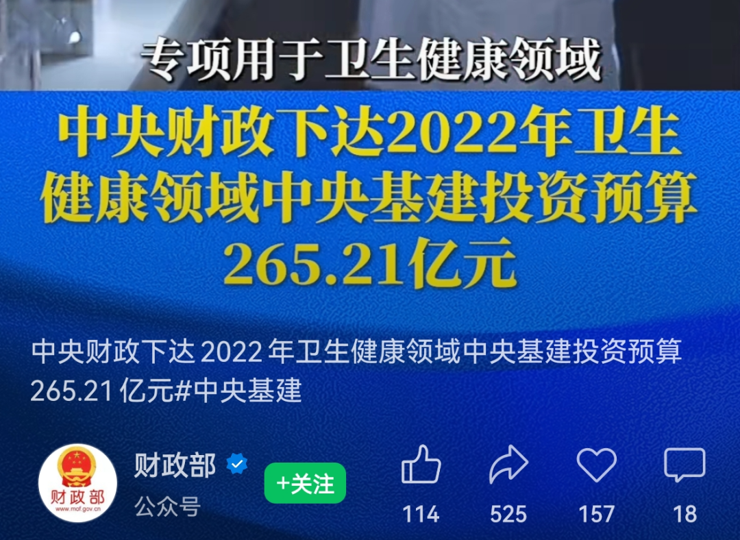 日前,中央财政宣布,下达中央基建投资预算265.21亿元,专项用于卫生健康领域,加强应对大规模疫情集中隔离收治设施建设,加快优质医疗资源扩容和区域均衡布局。 切实推动“十四五”102项重大工程和《“十四五”优质高效医疗卫生服务体系建设实施方案》等任务落地,不断推进健康中国建设,拓展公共卫生防控和救治成果。 很明显,本轮专项中提到的公共卫生、疫情防控、健康中国都是二十大报告中提到的医疗关键词,可见落地速度相当之快,相关医疗关键词和体外诊断领域也都是息息相关的。 2023年,全国医院检验科也将迎来医疗贴息贷款后,新一轮设备采购潮! 各省市医院详细投资预算明细 北京市 天津市 河北省 山西省 声明:1、凡本网注明“来源:小桔灯网”的所有作品,均为本网合法拥有版权或有权使用的作品,转载需联系授权。2、凡本网注明“来源:XXX(非小桔灯网)”的作品,均转载自其它媒体,转载目的在于传递更多信息,并不代表本网赞同其观点和对其真实性负责。其版权归原作者所有,如有侵权请联系删除。 3、所有再转载者需自行获得原作者授权并注明来源。 最新评论相关分类图文热点 最新文章