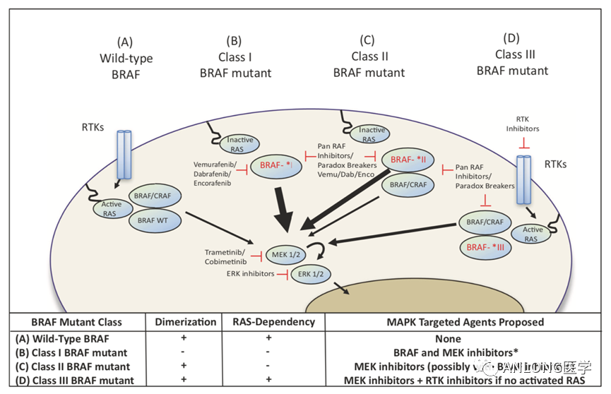 早在2018年11月26日,FDA已批准拉罗替尼上市,用于治疗携带NTRK基因融合的泛实体瘤成人和儿童患者。这是第一个获得FDA批准的不分癌种、只看突变的广谱抗癌靶向药,并被证明在儿童和成人的17种肿瘤中都有效。 拉罗替尼的获批是基于三项大型临床试验LOXO-TRK-14001(NCT02122913)、SCOUT(NCT02637687)和NAVIGATE(NCT02576431)。研究结果显示,拉罗替尼的客观缓解率(ORR)为75%,其中22%的患者获得了完全缓解(CR),53%的患者获得了部分缓解(PR)。 拉罗替尼三项临床试验结果汇总 2 恩曲替尼 2022年7月29日,罗氏制药的恩曲替尼(Entrectinib,罗圣全)获得NMPA正式批准,用于经充分验证的检测方法诊断为携带NTRK融合基因且不包括已知获得性耐药突变,患有局部晚期、转移性疾病或手术切除可能导至严重并发症,以及无满意替代治疗或既往治疗失败的成人和12岁及以上儿童实体瘤患者。早在2019年8月15日,FDA就已批准恩曲替尼上市,用于治疗NTRK基因融合阳性的晚期复发实体瘤成人和儿童患者。 恩曲替尼是一款靶向NTRK和ROS1基因的酪氨酸激酶抑制剂(TKI),具有中枢神经系统(CNS)活性,能够穿透血脑屏障,是临床上唯一一种被证明针对原发性和转移性脑疾病具有疗效的TRK抑制剂,可阻断ROS1和NTRK激酶活性,并导至ROS1或NTRK基因融合的癌细胞死亡。 恩曲替尼的获批是基于三项多中心、单臂、开放性临床试验ALKA-372-001(EudraCT 2012-000148-88)、STARTRK-1(NCT02097810)、STARTRK-2(NCT02568267),试验的主要终点为独立中心审查委员会(BICR)根据RECIST v1.1标准评估的ORR和中位缓解持续时间(DOR),次要终点包括CNS转移患者的ORR和DOR。对NTRK融合基因阳性实体瘤成人患者进行整合分析数据显示,无论基线脑转移状态,成人患者的ORR达到61.3%,DOR高达20.0个月。肉瘤、非小细胞肺癌、涎腺分泌性癌、乳腺癌、神经内分泌癌的ORR也分别高达59.4%、64.5%、84.6%、66.7%和40%。 BRAF BRAF基因位于7号染色体长臂(7q34),是一种重要的原癌基因,编码丝氨酸/苏氨酸特异性激酶,参与调控细胞生长、分化和凋亡等生物学事件。BRAF基因突变是一种广谱的基因突变,在恶性黑色素瘤中发生概率为40%~60%、甲状腺乳头状癌为30%~80%、结直肠癌为5%~15%、肺癌为2%~4%、恶性胶质瘤为3%,并在多种发病率较低的肿瘤包括浆液性卵巢癌、胆管癌、胰腺癌均有一定表达。 根据活化的机制不同,BRAF突变体有三种类型,BRAFⅠ类突变(BRAF V600 D/E/K/R/M 突变),可以强烈激活BRAF激酶活性,组成性活化MAPK通路,且不依赖于RAS作为单体发出信号;BRAFⅡ类突变 ( K601、L597、G464 和 G469等),可作为 RAS 非依赖性二聚体激活下游通路;BRAFⅢ类突变(G466、N581、D594 和 D596等),激酶活性低或缺乏激酶活性,这类突变体依赖RAS并且对依赖ERK反馈的RAS敏感,通过增强其与RAS的结合激活ERK ,并需要分子共存机制使肿瘤中的RAS活化才能起作用。BRAF基因中最常见为V600E突变,占所有肿瘤BRAF突变的95%以上。 BRAF突变类型 2022年6月23日,FDA加速批准诺华的达拉非尼(Dabrafenib,泰菲乐)联合曲美替尼(Trametinib,迈吉宁)用于携带BRAF V600E突变、不可切除或转移性实体瘤的6岁及以上儿童和成人患者,这些患者在先前的治疗后出现进展且没有其他治疗方案。 达拉非尼和曲美替尼均为小分子TKI类药物,达拉非尼能够结合发生突变的BRAF V600E/K/D基因编码的蛋白产物,发挥抑癌作用。而曲美替尼抑制的位点则是BRAF突变激活的下游基因MEK1/2,两者联合可以进一步放大药物疗效。 本次获批是基于3项临床试验中观察到的临床疗效和安全性数据,包括BRF117019(NCT02034110)、NCI-MATCH(NCT02465060)和一项儿童研究X2101(NCT02124772)。 BRF117019和NCI-MATCH的H组研究共纳入131名成人患者,包括24种肿瘤类型,结果显示达拉非尼+曲美替尼在携带BRAF V600E的实体瘤患者中ORR高达80%,胆道癌患者的ORR为46%,DOR为9.8个月;高级别胶质瘤患者的ORR为33%,中位DOR为13.6个月;低级别胶质瘤患者的ORR为50%,DOR范围为6个月至29个月。 BRF117019和NCI-MATCH临床试验数据 X2101研究是一项多中心、开放标签、多队列试验,包括难治性或复发性实体肿瘤儿童患者。研究结果显示,达拉非尼联合曲美替尼的ORR为25%。对于9名有反应的患者,78%的患者DOR为6个月或更长时间,44%的患者DOR为24个月或更长时间。 RET RET原癌基因位于第10号染色体长臂(10q11.21),编码一种具有酪氨酸激酶受体RET蛋白。RET蛋白与配体结合后,可激活下游多种信号途径,如RAS、PI3K、STAT等,参与细胞的存活、增殖和分化。RET基因激活的RET蛋白通过多种信号通路参与不同肿瘤细胞的增殖、凋亡、侵袭,影响肿瘤的发生发展。 RET基因改变和野生型基因过度表达会驱动肿瘤形成,RET基因改变主要包括RET融合和点突变,其中肿瘤的形成主要与RET融合相关。目前已在多个癌种中发现RET融合,包括60%甲状腺髓样癌、10%~20%乳头状甲状腺癌、1%~3%非小细胞肺癌,在食管癌、结直肠癌、唾液腺癌、卵巢癌中的发生概率不足1%。在非小细胞肺癌中,RET基因融合阳性多见于年轻、女性、少量吸烟或不吸烟的亚裔患者。乳头状甲状腺癌中最常见的RET融合类型为CCDC6-RET和NCOA4-RET,而非小细胞肺癌中最常见的为KIF5B-RET。RET融合的检测方法有多种,如IHC,FISH,RT-PCR,DNA-NGS,RNA-NGS等,其中DNA-NGS和RNA-NGS检出率较高(RET基因融合可以用DNA-NGS检测到,但联合RNA-NGS检测可以提高检测灵敏度)。 RET基因主要融合类型 2022年9月21日,FDA加速批准塞普替尼(Selpercatinib,Retevmo)用于治疗携带RET基因融合的局部晚期