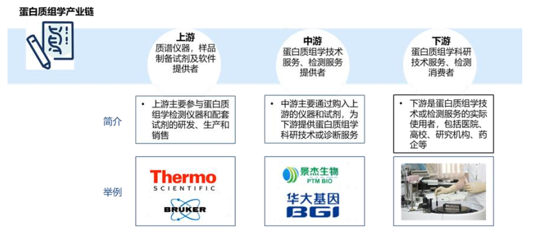 ![]() 代表玩家 蛋白质组学产业链的上游主要包括赛默飞、布鲁克、CST等质谱仪和试剂生产商。中游为蛋白质组学技术服务供应商,包括景杰生物、中科新生命等。下游高校、科研院所、医院以及生物医药企业等终端用户。 ✦ + 国 外 ✦+ + Seer Seer, Inc.于2017年3月16日在特拉华州注册成立,2020年在NASDAQ证券交易所上市。该公司致力于创新变革生物领域产品并将其商业化,帮助研究员获得深入、精确的生物信息以及实现卓越的科学成果,并逐步将产品应用于临床诊断中。初始产品Proteograph利用其专有的工程纳米颗粒(NP)技术,在整个蛋白质组中提供无偏见、深入、快速和大规模的访问,几乎任何实验室都可以使用。 ✦+ + Olink Olink Proteomics创立于瑞典乌普萨拉,其公司使命是共同促进蛋白质组学,致力于突破蛋白检测在“多重能力/特异性”、“灵敏度”和“检测通量”等方面的综合瓶颈,进而实现超灵敏多重蛋白标志物检测、无偏靶向蛋白质组学和精准蛋白组学,以帮助蛋白标志物的发现、药物研发、转化医学、以及让“多组学整合”真正切实可行。 ✦+ + Nautilius Nautilus总部位于华盛顿西雅图,是一家处于发展阶段的生命科学公司,致力于量化和揭秘蛋白质组复杂性的平台技术。其公司使命是普及蛋白质组的使用,促进人类健康和医学的根本性进步,从而对蛋白质组学领域进行改革。 ✦ + 国 内 2020年,中国蛋白质组学科研服务市场规模达到5.8亿人民币规模,其中份额排名靠前的5家公司分别是景杰生物、中科新生命、华大基因、诺禾致源以及欧易生物,占到了总市场份额的58.8%。 ✦+ + 景杰生物 杭州景杰生物科技股份有限公司成立于2010年,以蛋白质分析技术为核心,通过提供蛋白质组学技术服务和抗体试剂产品,服务于生命科学基础研究、药物研发和临床诊疗。先后推出了包括巴豆酰化、丙二酰化、琥珀酰化、2-羟基异丁酰化、戊二酰化、苯甲酰化、3-羟基丁酰化以及乳酸化在内的 11 种新型蛋白质修饰组分析业务。2019-2021年,公司蛋白质组学技术服务收入分别为 11,028.78 万元、14,308.07万元、17,137.86 万元,占主营业务收入的比重分别为 95.11%、93.22%和 77.53%,是公司业绩主要来源。 ✦+ + 中科新生命 上海中科新生命生物科技有限公司成立于 2004 年,前身为中科院上海生命科学研究院蛋白质组研究分析中心对外服务部,是最早参与国际HLPP(肝脏)、HPPP(血浆)项目的平台之一,主要从事质谱技术的应用,布局科技服务、生物医药、临床检测三大业务板块,已建立起以蛋白质组、修饰组、代谢组、脂质组、基因组、转录组为核心的多组学平台。 ✦+ + 欧易生物 上海欧易生物医学科技有限公司成立于 2009 年,为大生命科学、大健康相关研究领域,以及医药、食品及日化企业的客户提供从基础研究到药物靶点发现、药理药效及安全性评价、疾病分子标志物筛选、致病菌及耐药菌溯源等相关技术服务。已建成完整的多组学检测服务平台和多组学联合大数据分析平台,提供基因组、转录组、表观组、微生物组、蛋白组、代谢组等全组学检测服务。 参考来源: 1. 蛋白组学:临床科研无法忽视的领域;这5项基金和两位大咖,可为你提供研究思路的借鉴(2022) 2. 蛋白质组学最新进展、应用及挑战 3. 景杰生物招股书 4. 各企业官网 |