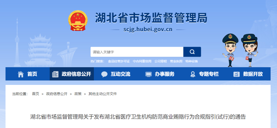 湖北省医疗卫生机构防范商业贿赂行为合规指引(试行) 第一章 适用规范 第一条 为了引导和帮助医疗卫生机构培育公平竞争的合规文化,建立健全预防商业贿赂管理制度,防范商业贿赂法律风险,促进我省医疗卫生市场竞争有序和医疗卫生事业高质量发展,根据《中华人民共和国反不正当竞争法》《关于禁止商业贿赂行为的暂行规定》等法律法规规章和相关规定,结合本省实际,制定本指引。 第二条 本省行政区域内各类医疗卫生机构防范商业贿赂行为,适用本指引。 第三条本指引所称商业贿赂,是指经营者以谋取交易机会或竞争优势为目的,采取财物或其他手段贿赂相关单位或个人的行为。 本指引所称医疗卫生机构商业贿赂行为,是指医疗卫生机构在药品、医疗器械(包括耗材)、设备、工程建设、科研、医疗服务、软件等项目的采购、出租、承包以及使用过程中,为相关经营者谋取交易机会或竞争优势提供支持帮助,索取或非法收受折扣、佣金、财物或其他利益等行为。 本指引所称医疗卫生机构防范商业贿赂活动行为人(以下简称医疗卫生机构行为人),包括但不限于医疗卫生机构、医疗卫生机构的科室和下属单位、医疗卫生机构的工作人员,受医疗卫生机构委托办理相关事务的单位或者个人,利用职权或者影响力影响交易的单位或者个人。 本指引所称财物,是指现金和实物,包括以统方费、促销费、宣传费、赞助费、科研费、劳务费、咨询费、佣金等名义,或者以报销各种费用等方式,给付医疗卫生机构或相关单位和人员的财物。 本指引所称其他手段,是指提供各种名义的旅游、考察、餐饮、有偿发表文章等给付财物以外的其他利益手段,或者提供给单位或个人的无偿或明显低于市场价格的各类服务等。 第四条医疗卫生机构行为人在医疗卫生经营服务时不得收受或者索取贿赂。 支付的佣金应当与提供的中间服务酬劳相符,不得进行利益输送。 第五条 经营者在交易活动中,可以以明示方式向交易相对方支付折扣,或者向中间人支付佣金,但支付的折扣或佣金必须如实入账,接受折扣、佣金的单位(个人)也应当按照财务会计制度规定如实入账。 医疗卫生机构行为人不得在账外暗中收受回扣,包括附赠的现金、实物以及其他利益。 在账外暗中给予对方单位或者个人回扣的,以行贿论处;对方单位或者个人在账外暗中收受回扣的,以受贿论处。 第六条医疗卫生机构行为人不得利用大处方、重复检查、过度医疗以及用低价耗材冒充高价耗材、串换编码、多计耗材使用量等手段变相收受贿赂。 上述人员收受商业贿赂的行为,医疗卫生机构及相关单位疏于管理的,承担管理责任。 第二章 商业贿赂法律风险 第七条因商业贿赂行为,给他人造成损害的,应当依法承担民事责任。 医疗卫生机构中的党员和国家工作人员涉嫌商业贿赂的,由纪检监察机关或任免机关、单位按照管理权限,依纪依规依法进行处理。 第八条医疗卫生机构行为人妨害市场监管部门依法履行职责,拒绝、阻碍调查的,依据《中华人民共和国反不正当竞争法》,由市场监管部门责令改正,对个人可以处五千元以下的罚款,对单位可以处五万元以下的罚款,并可以由公安机关依法给予治安管理处罚。 第九条实施商业贿赂构成犯罪的,依据《中华人民共和国刑法》,追究刑事责任。 第三章 合规风险评估和制度建立 第十条医疗卫生机构应当建立防范商业贿赂制度,健全监督保障机制,加强招标采购、实物出租、业务承包、药品采购、医疗器械租赁使用、相关学术研讨等重点环节合规管理,明晰责任边界,规范医务行为,开展常态化监督检查,发现问题及时纠偏。 医疗卫生机构的法定代表人是防范商业贿赂第一责任人,应当将防范商业贿赂与医疗卫生业务发展等工作同谋划、同部署、同落实,守牢法律红线,严格责任追究。 第十一条医疗卫生机构应根据本单位实际,梳理商业贿赂易发的风险源、风险领域、风险点、风险单位、风险岗位、风险人,组织专门力量,对相关风险实施全过程监测评估预警、隐患排查整治。重点加强对招投标、药品医疗器械管理使用,“带金销售”、“依回扣高低使用药品和耗材”、不合理资助学术研讨活动等的监测监管,防患于未然。将防范商业贿赂纳入法治和医德教育培训规划计划、纳入入职考察和工作考核体系,从严管理员工,全面提升其法律素质和职业素养。 第四章 法定义务及权利 第十二条医疗卫生机构及其员工应当接受并配合有关部门依法进行的监督检查,不得从事以下行为: (一)拒绝、阻碍、拖延执法人员依法进入经营场所进行检查; (二)拒绝、拖延向执法人员提供文件资料或者提供不完全的文件资料; (三)拒绝接受执法人员依法进行的调查和询问; (四)提供误导性信息或者虚假材料、信息; (五)隐匿、销毁、转移证据; (六)其他拒绝、阻碍调查的行为。 第十三条医疗卫生机构行为人有权利依法举报涉嫌商业贿赂的行为,维护自身合法权益。 第十四条医疗卫生机构在合规管理过程中发现的商业贿赂等违法行为,应当主动向执法机构报告,并配合执法机构进行调查,及时制定和实施整改措施。 第五章 附 则 第十五条本指引仅对本省行政区域内医疗卫生机构防范商业贿赂合规管理作出一般性指引,不具有强制性。法律法规规章另有规定的,从其规定。 第十六条本指