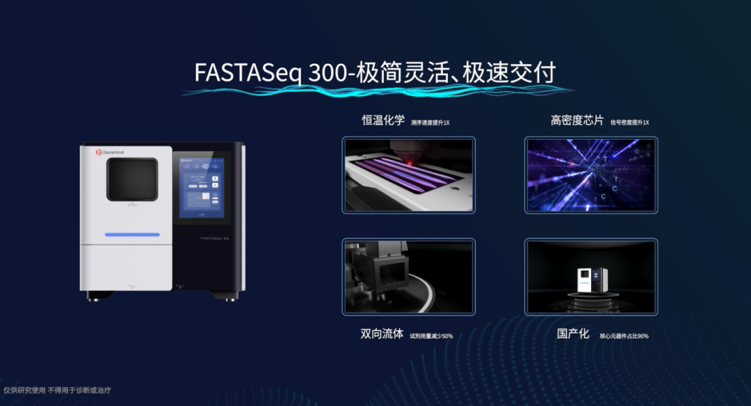 11月28日,真迈生物主题为“极简灵活 极速交付”的测序系统新品线上发布会成功举办,正式发布了真迈生物第三款自主研发的基因测序系统FASTASeq 300。 FASTASeq 300沿用了GenoLab M基因测序系统使用的SURFseq测序技术,在此基础之上,采用恒温化学结合“虚拟双单元测序”技术,实现了测序过程无需升降温,单芯片生化反应和信号采集并行,大大提高了测序速度。优化的试剂化学组分和流体设计在保证数据质量的前提下,单位数据产出所需的试剂用量大大减少,有效降低了测序成本。新型高密度测序芯片配合BaseCall算法优化实现了精准的信号采集;核心元器件的国产化,使得成本和供应链更加可控、稳定。 孙雷表示,真迈生物始终以用户为中心来打造更契合用户需求的产品。FASATASeq 300测序系统的技术优化和创新为用户提供了便捷、灵活的工作流程,让用户简单测序,轻松应对各类测序场景。 FASTASeq 300拥有FCH(250M)和FCM(100M)两种规格的测序芯片,芯片的4流道设计可供用户在“机载⾃动加样”或“⼿动分流道加样”双模式间灵活选择,覆盖SE50~PE150等多种测序读长,单次数据产出5Gb~75Gb,同时,FASTASeq 300还支持用户自定义FASTQ文件的输出节点(Multi-time Output, MTO),以上特点都显著提升了FASTASeq 300的灵活性,很好地满足了用户在多应用场景下的实际检测需求。 FASTASeq 300的测序操作简便、快捷。预混式的测序试剂,即放即测,无需按压和额外配置、添加特定试剂组分。应用RFID技术使得所有耗材在装载后其信息被自动读取。测序完成系统器将自动执行下机清洗工作,无需人工值守,真正实现简单操作,轻松上机。 此外,FASTASeq 300还预留了外置废液桶接口可供用户选择不同的废液存储方式,减少废液倾倒操作,方便用户日常使用和维护,提升使用体验。 FASTASeq300拥有极具竞争力的测序速度。以宏基因组测序为例,使用FASTASeq 300 FCM 芯片可最快在4.5小时内完成4个样本的测序工作。使用FCH 芯片则可在8.0小时内完成12个样本的测序工作。灵活、适宜的检测通量降低了用户的开机成本,卓越的测序速度大大缩短了检测交付周期。 FASTASeq 300的成功上市意味着真迈生物成为了全球少数拥有测序系统产品阵列和商业化交付能力的测序系统制造商之一。从基因测序的源头技术创新,到实现全流程自主可控,再到打造满足科研和临床需求的测序产品阵列,真迈生物的成长之路,是以科创力量推动行业高质量发展的真实写照之一。 以真迈生物为典型的基因测序上游企业,始终坚持以自主创新的步伐,推动基因测序技术创新。未来,随着基因测序行业不断发展壮大,基因测序技术将为守护人类生命健康做出更大贡献。 |