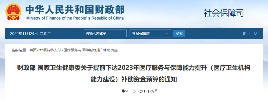 百亿财政资金提前下发,2023年公立医院诊疗能立建设,引爆新一轮采购需求。 119.8亿资金下发, 事关全国公立医院设备采购 11月29日,国家财政部社会保障司发布了《财政部 国家卫生健康委 国家中医药局关于提前下达2023年医疗服务与保障能力提升(公立医院综合改革)补助资金预算的通知》。 据补助资金分配表了解,本次国家提前下发的2023年公立医院综合改革补助资金共计共计80亿元。 其中,山西、内蒙、辽宁、浙江、安徽、福建、山东、河南、湖北、湖南、广东、重庆、贵州、甘肃、宁夏等15个省份,分别额外获得20000万元公立医院改革与高质量发展示范项目补助资金,合计30亿元。 除了提前下发的公立医院综合改革补助资金,国家财政部还提前下发了《2023年医疗服务与保障能力提升(医疗卫生机构能力建设)补助资金预算》。 据补助资金分配表,2023年第一批医疗卫生机构能力建设补助资金合计39.86亿元,其中,补助资金靠前的省份主要有新疆、西藏、云南、贵州、四川。 据《通知》了解,这两笔资金主要用于推进全国公立医院综合改革以及提升医疗卫生机构能力建设和服务水平。 而根据国务院办公厅发布的《关于城市公立医院综合改革试点的指导意见》,公立医院综合改革中还包括落实公立医院基本建设和设备购置,配备相应的大型医用设备。同时,文件强调,公立医院要优先配置国产医用设备。 毫无疑问,提前下发的百亿财政资金,全国公立医院医疗服务提升的同时,势必会带动相关医疗设备升级更新,利好所有医械人。 据此前文件了解,2022年提前下达的公立医院综合改革补助资金为79.8亿元,医疗卫生机构能力建设补助资金为48.4亿元,相比2023年,资金数量相差不大。 另外,本次提前下发的80亿公立医院综合改革补助资金中,特别划出了30亿元,重点支持支持公立医院改革与高质量发展示范项目。 今年3月,国家财政部发布了《关于组织申报中央财政支持公立医院改革与高质量发展示范项目的通知》,示范项目主要聚焦三大方面:提升市县级公立医院诊疗能力、加强智慧医院建设,以及控制医疗费用不合理增长。 其中,重点支持市县级公立医院传染病、精神病、急诊急救、重症医学、心脑血管、妇产科、儿科等临床专科建设,以及推进电子病历、智慧服务、智慧管理“三位一体”的智慧医院建设和医院信息标准化建设。 根据此前通知,每个示范项目中央财政补助不超过5亿元(其中10%的资金专门作为绩效奖补资金)。 毫无疑问,这30亿只是开始,随着项目的不断推进,将持续利好县级公立医院相关科室建设及设备采购。 附:县医院升三级必备医疗设备清单 |