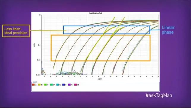 在之前的文章当中,我们提到了PCR的阶段,所以有朋友在后台询问我们PCR的阶段是什么,它们有什么作用,这是一个很好地问题,因为RT-PCR确实存在四个阶段,基线期、指数期、线性期和平台期。其中,基线期是PCR反应还没有结果,或者其信号值还不能超过背景值的时期,所以我们不在这次的文章中进行探讨。 在反应刚刚开始的时候,所有的试剂都是过量的,因此,在每个循环当中,我们获得的产物都会翻倍。所以,在设置为对数比例的扩增图中,我们看到这种指数式增长都是一条直线,这个阶段被称为指数期,有的时候也被称为几何对数期。 但试剂的量不会总是那么充足,所以这种翻倍并不会永远持续下去。在某些时候,试管中的试剂,引物、DNTPs等等开始变少。这个时候,反应速度开始减慢,这个阶段被称为线性期。 最后,当试剂运行了足够多的周期后,有些反应的关键成分被用完了,整个反应停了下来,这个阶段就被称为平台期。 好了,以上就是PCR反应的三个阶段,那么,它们有什么作用,我们为什么要关心平台的阶段呢? 这是因为只有一个阶段能产生高质量的定量数据,没错,就是指数期。 为了更好的说明原因,我们来看一下这个例子。在这个运行中,我们取了一个高浓度的样品,并以10倍的比例进行连续梯度稀释,而且对于每一个浓度水平,我们都进行了八次重复。 现在,让我们注意上图中黄色方框画出的区域,我们可以看到,在这个区域中,所有稀释浓度水平都是非常均匀的,和我们预期的完全一样。同时,每一个浓度水平的重复都非常精密,这意味着精密度也非常好。 但是,随着反应进入线性期,这种可预测性开始消失。我们可以看到,原先很漂亮的直线开始弯曲,完全扰乱了均匀的间隔,而且精密度也大大下降。 最后,在平台期的时候,数据全部合并在一起,已经很难分辨了。 这就是我们为什么总是希望在指数期对数据进行分析的原因,因为在这里,我们将会得到最好的结果,特别是对于定量反应来说。 那么,如何能做到这一点呢?那就要确保我们把阈值设置在指数期内,关于阈值的相关信息,大家可以参考我们之前的文章《分子:RT-PCR中的阈值是什么?》。 |